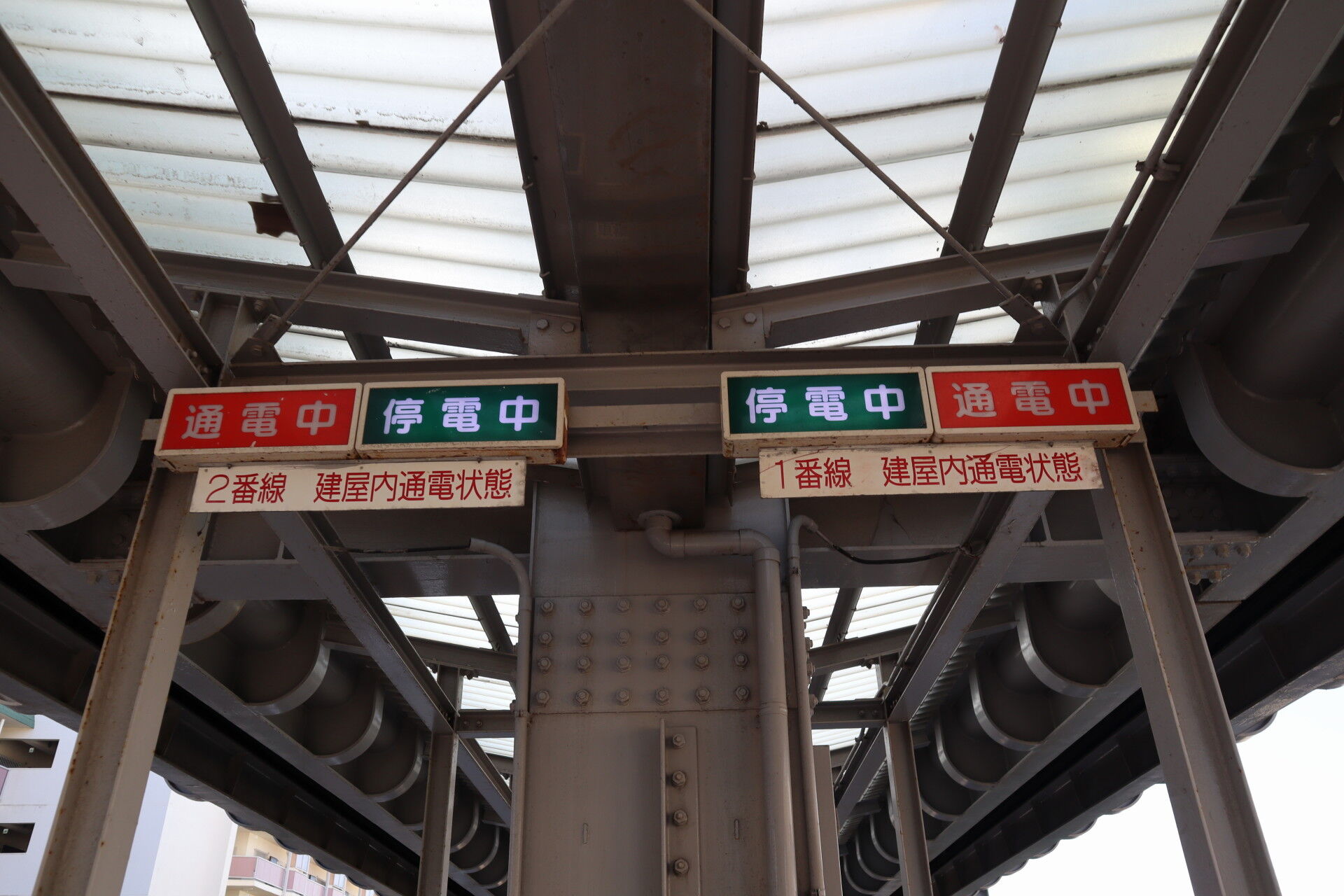 ホームには乗車できない列車である旨放送されていました。駅の放送は司令所から流すことができて集中管理されているのだそうです。