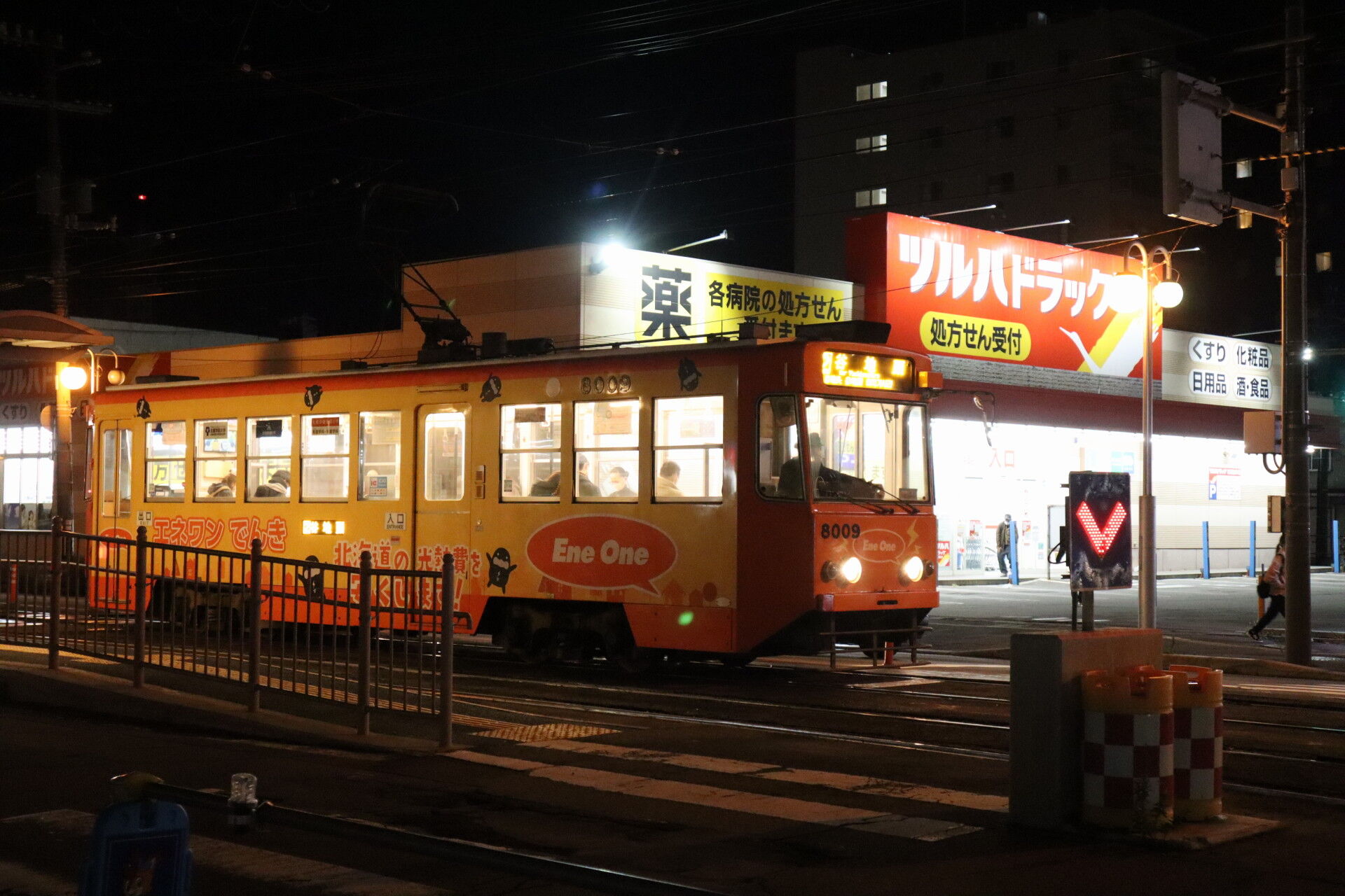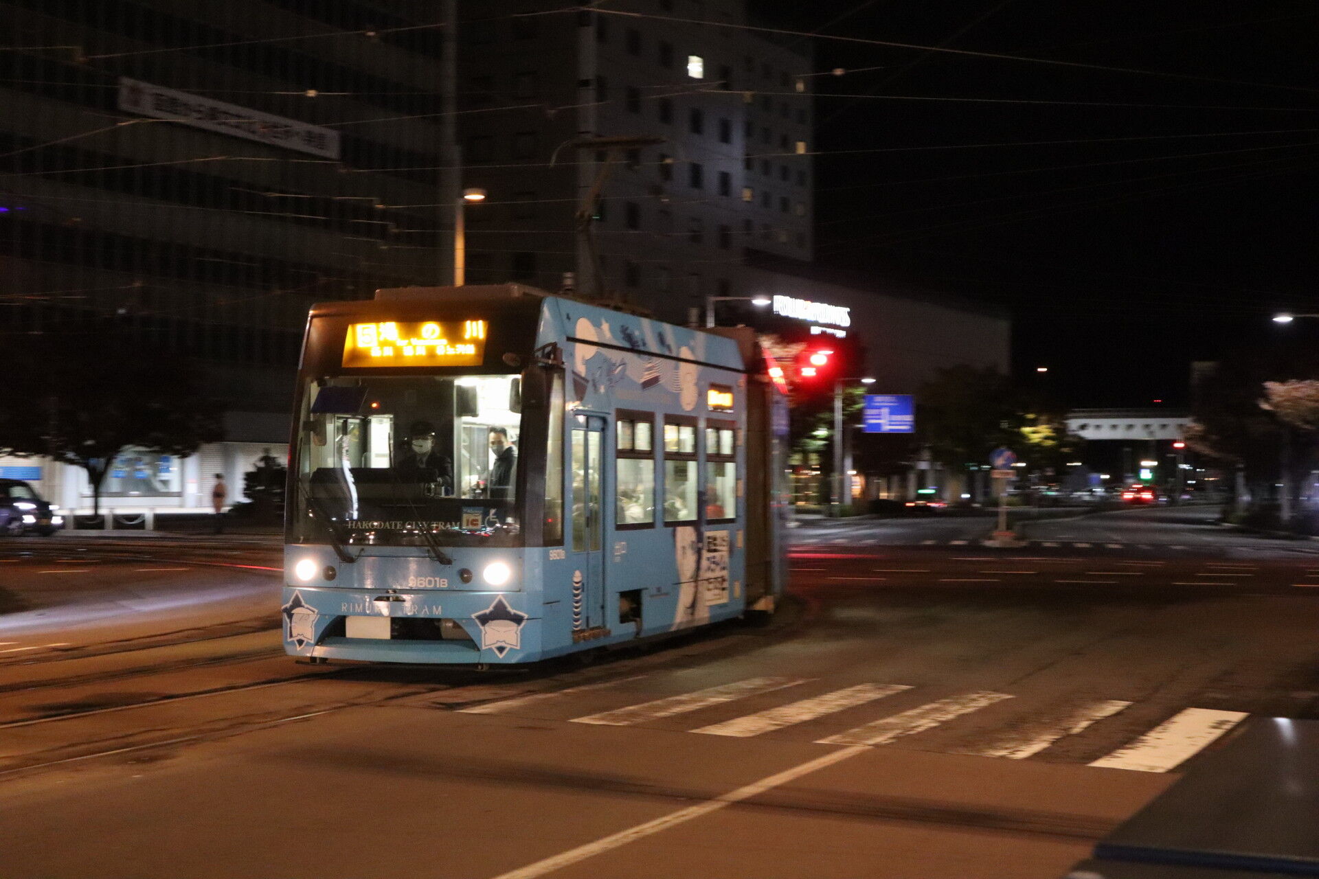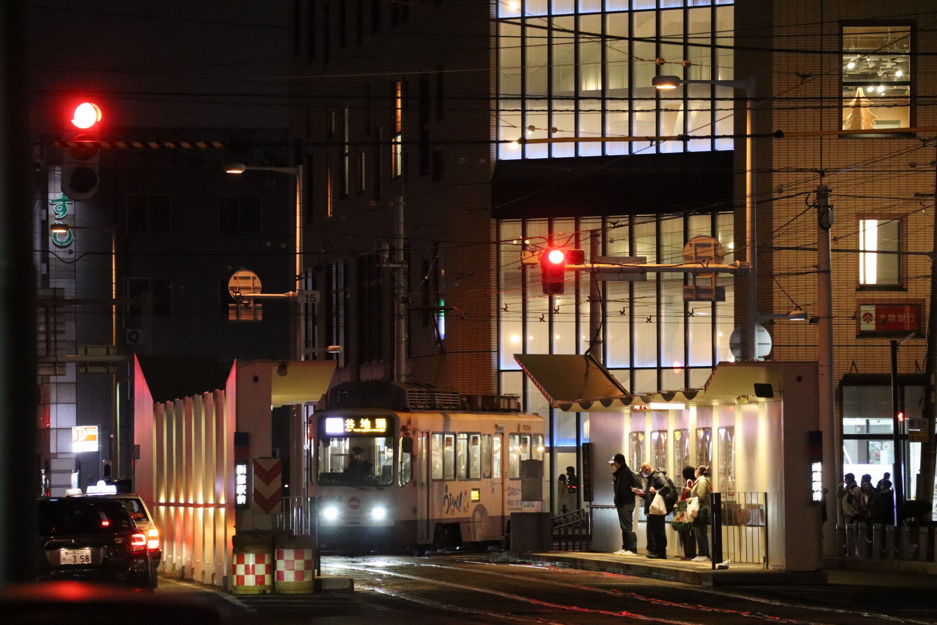 夜間撮影も楽しいものです。街にいるって感覚。本当の田舎はこんな時間に何も走ってないですから。