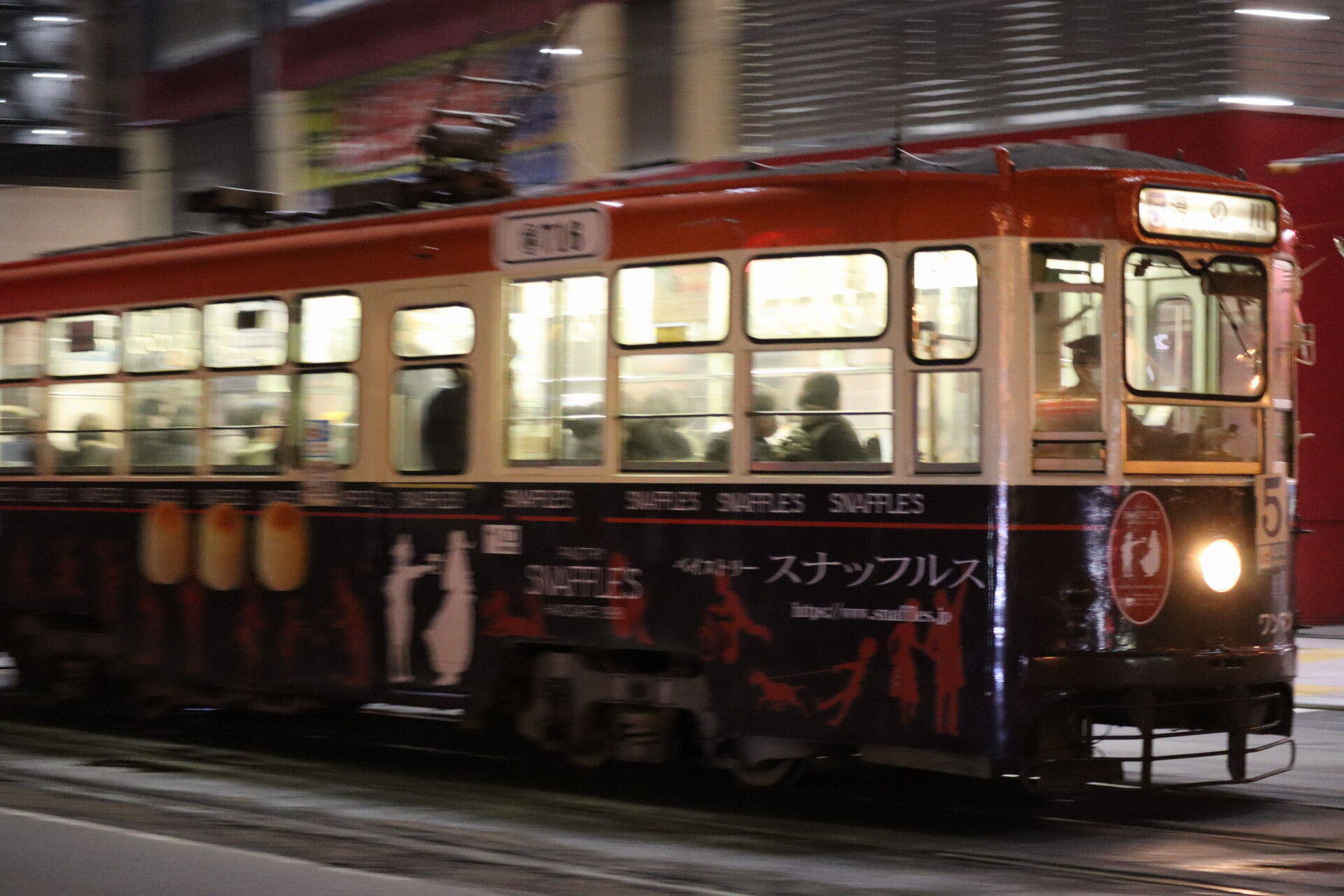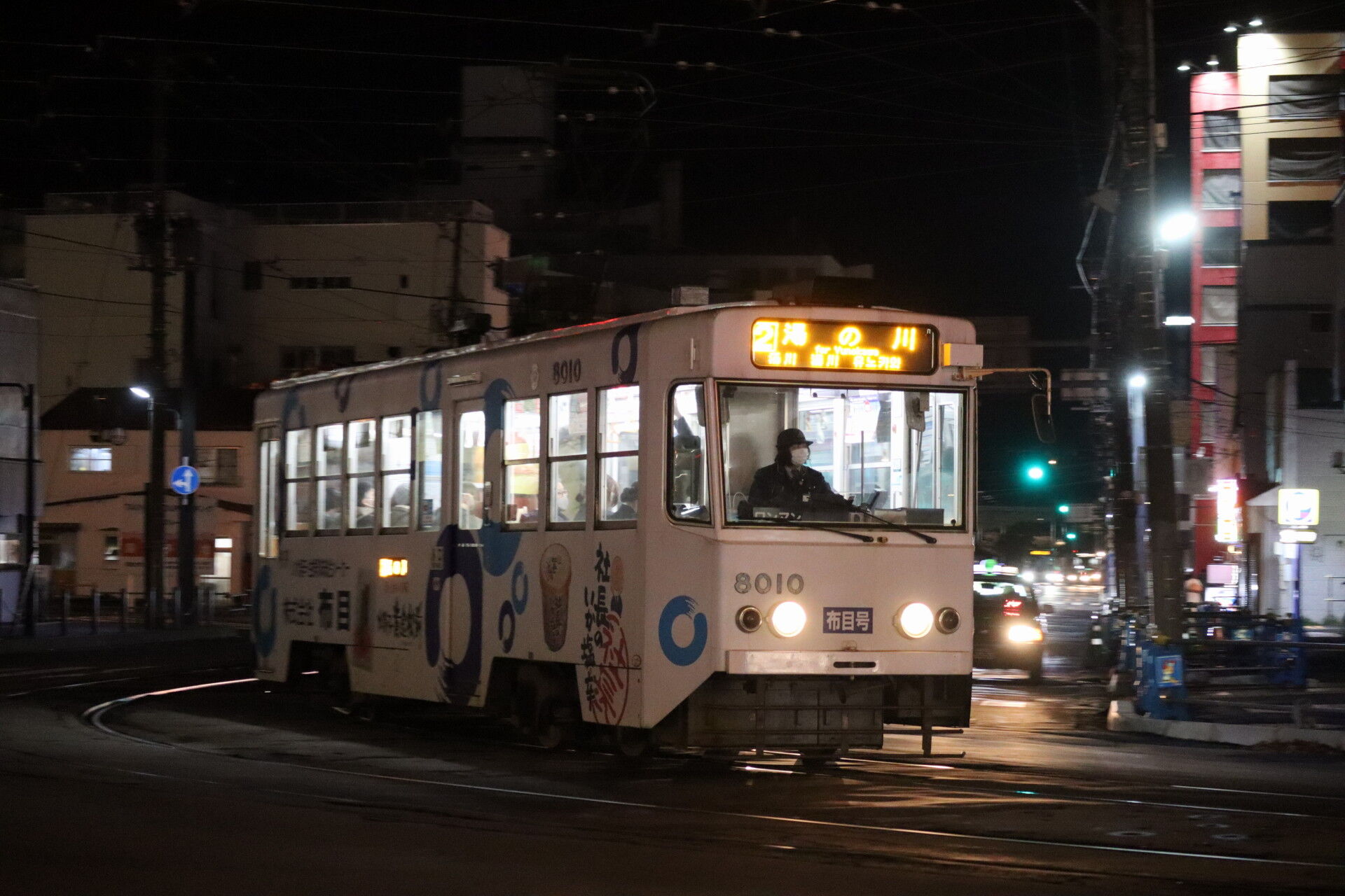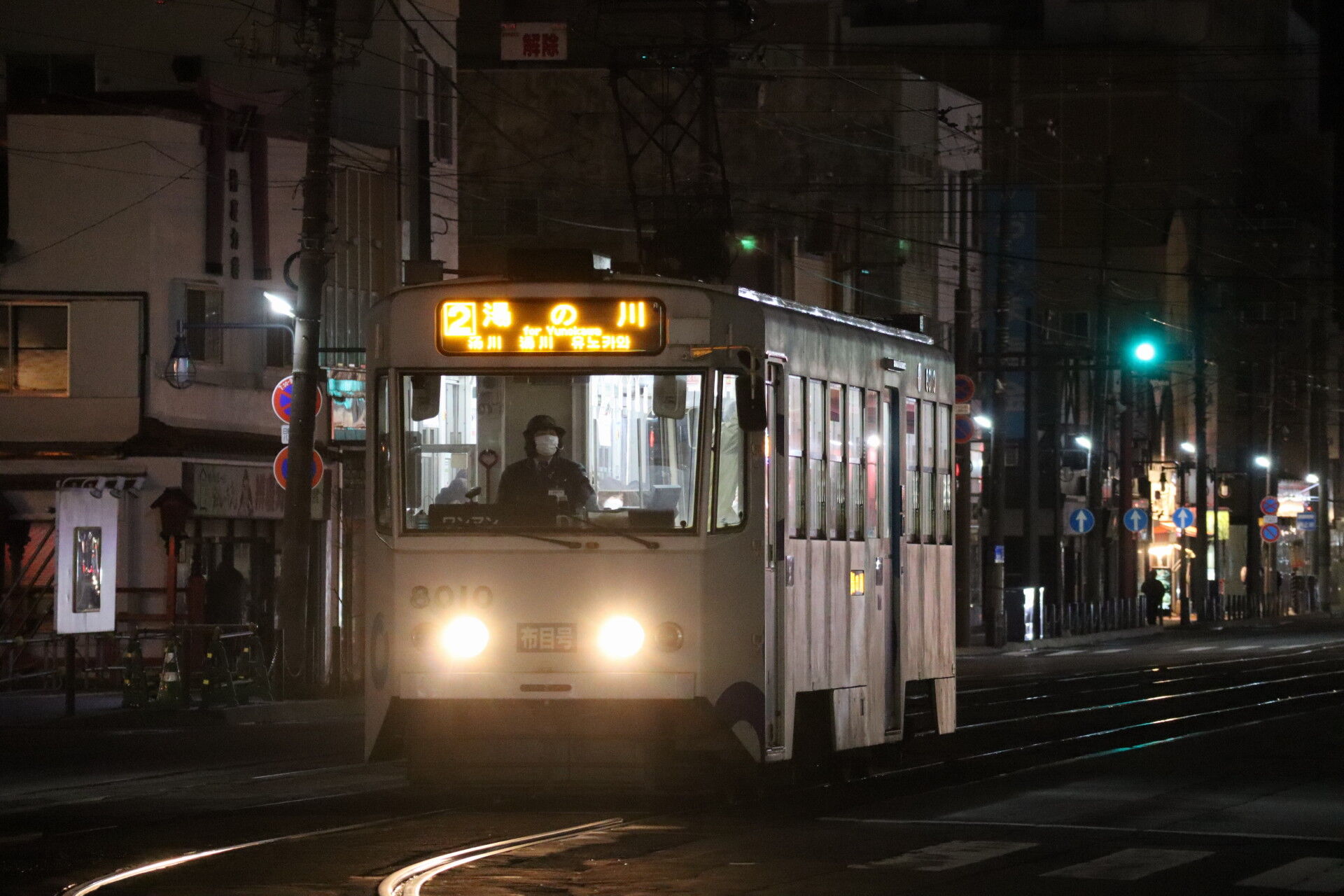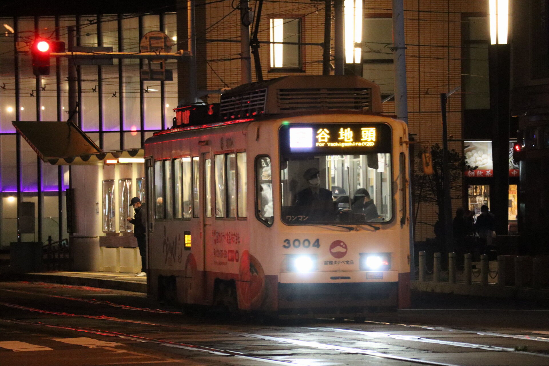 夜間撮影も楽しいものです。街にいるって感覚。本当の田舎はこんな時間に何も走ってないですから。