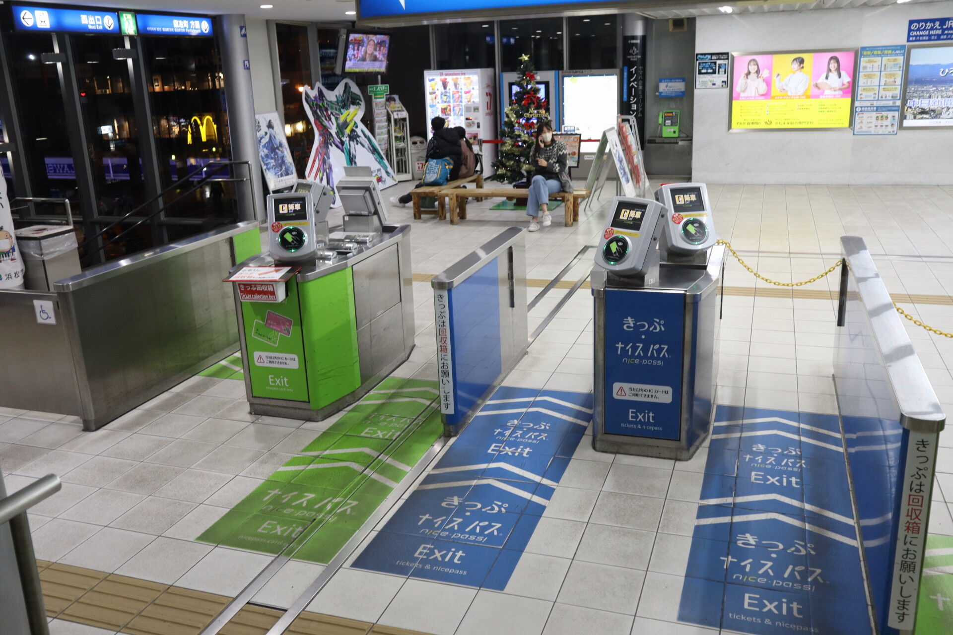 出口表記は割と国鉄リスペクトなやつを単純に自社CI化したようなデザイン。やはり面白い……。