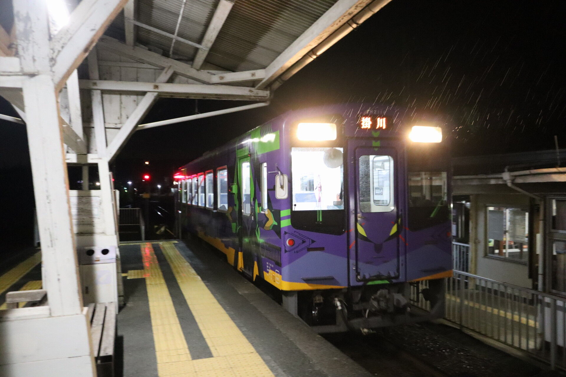 天浜線は新所原から浜名湖の北岸を走り、途中西鹿島で遠州鉄道と接続し、新幹線の止まる掛川駅へとつながり、基本的には新所原と掛川の全線を走行するのですが、夕方になると金指行きという、どっちにも辿り着かないやつがあります。どうやらそれにあたっちゃったらしい。