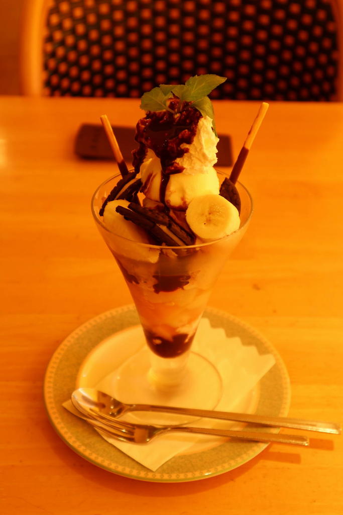 デパート最上階のファミレスでチョコパフェを食べ