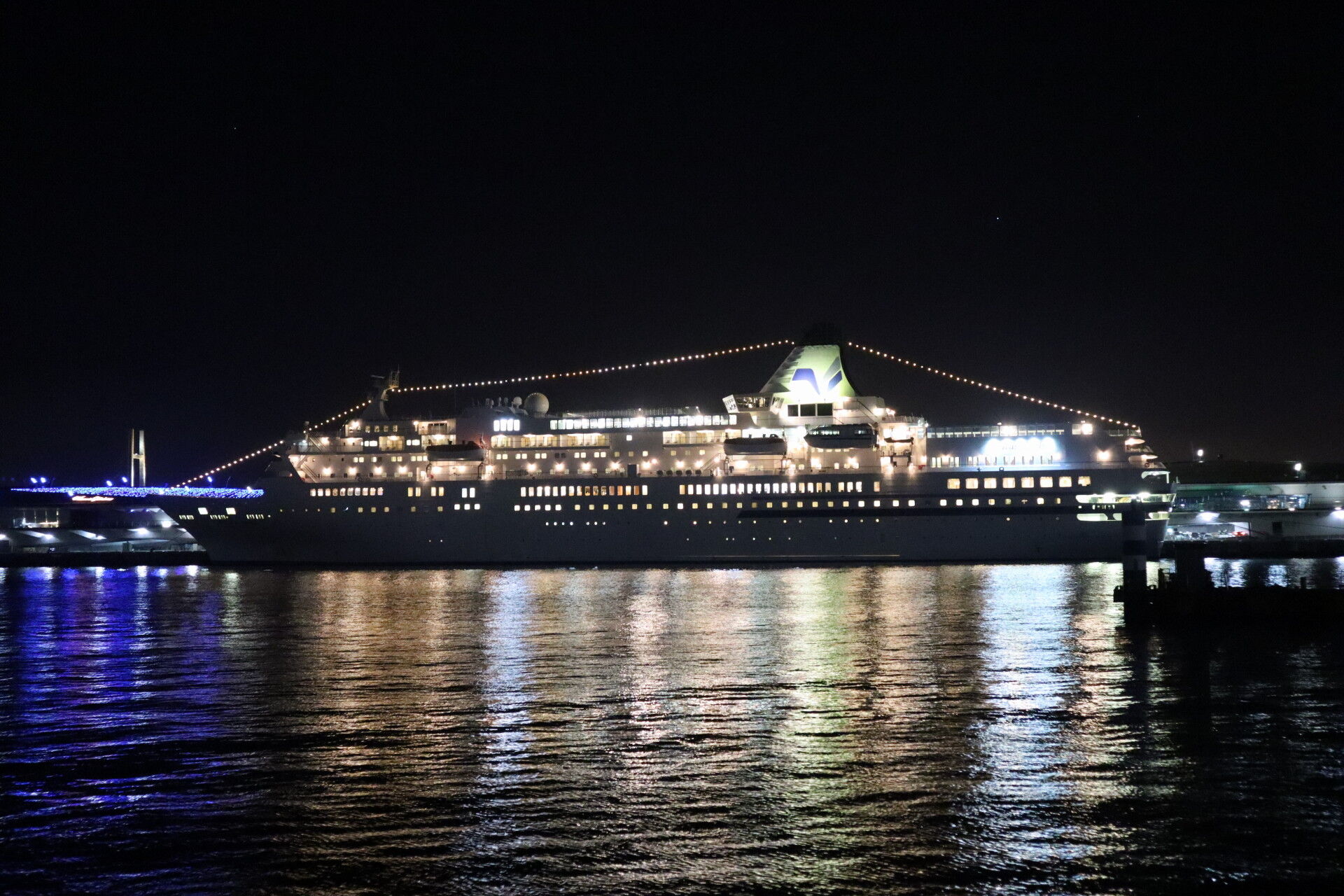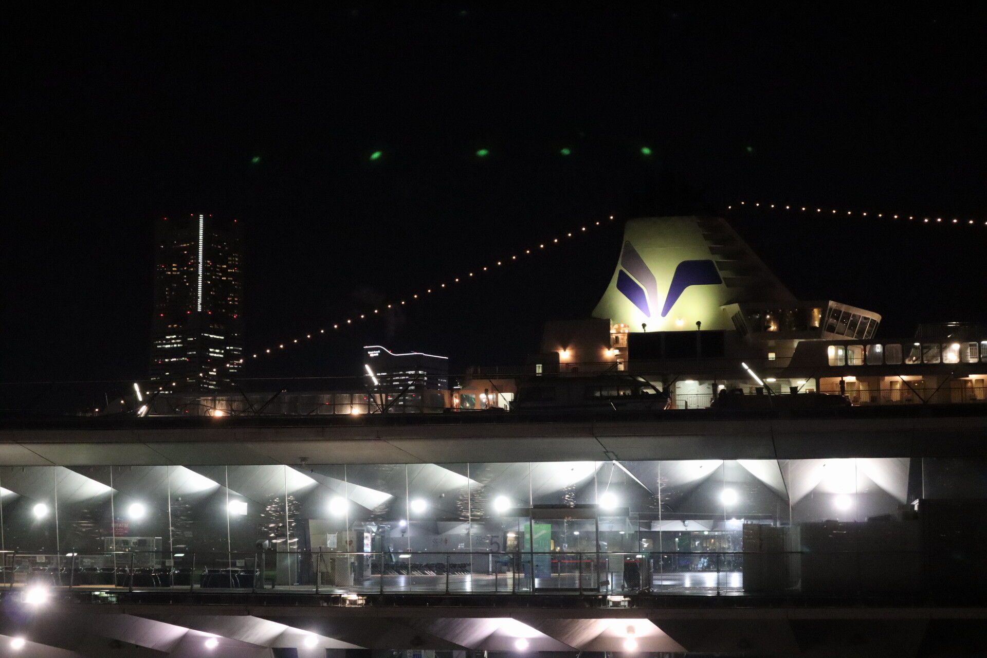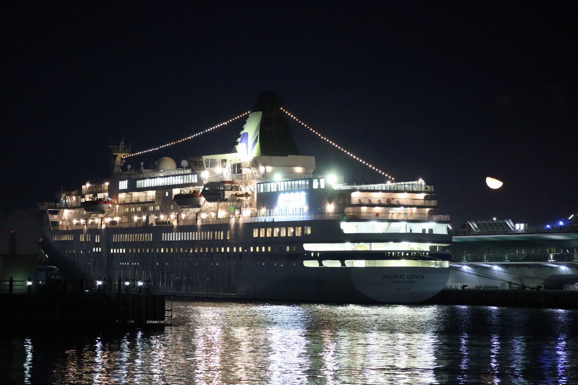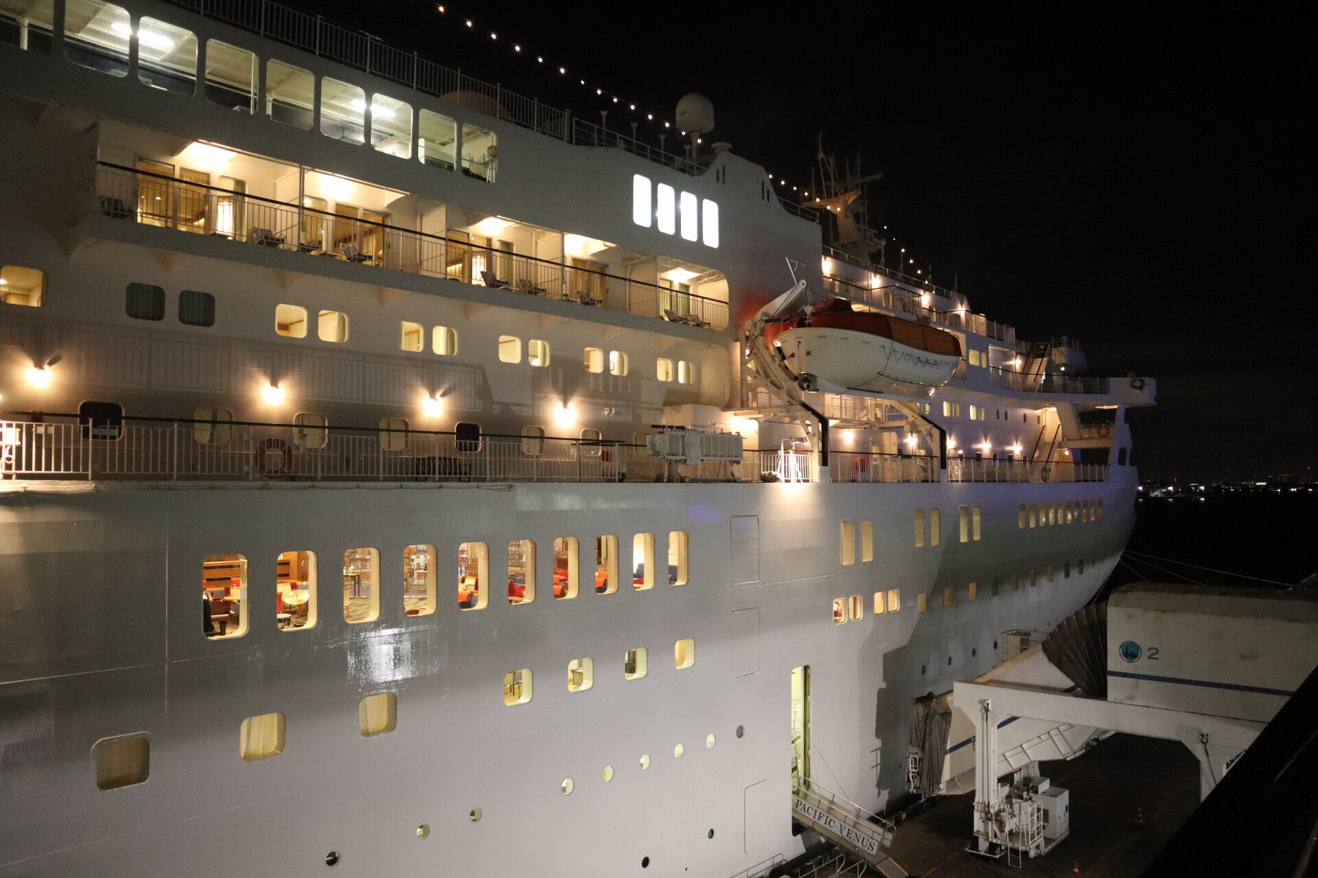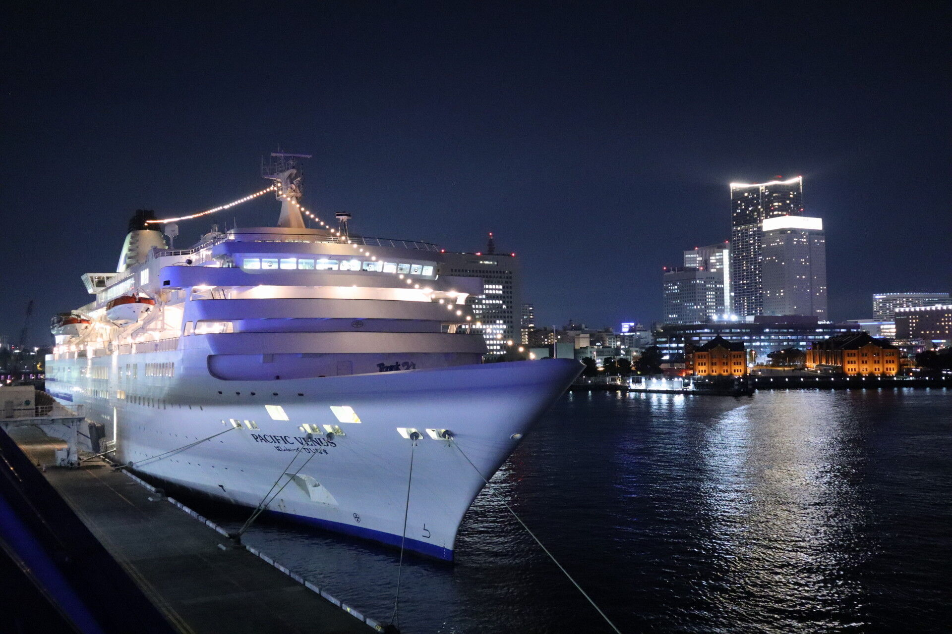 大さん橋に停泊するぱしふぃっくびいなすが見えます。