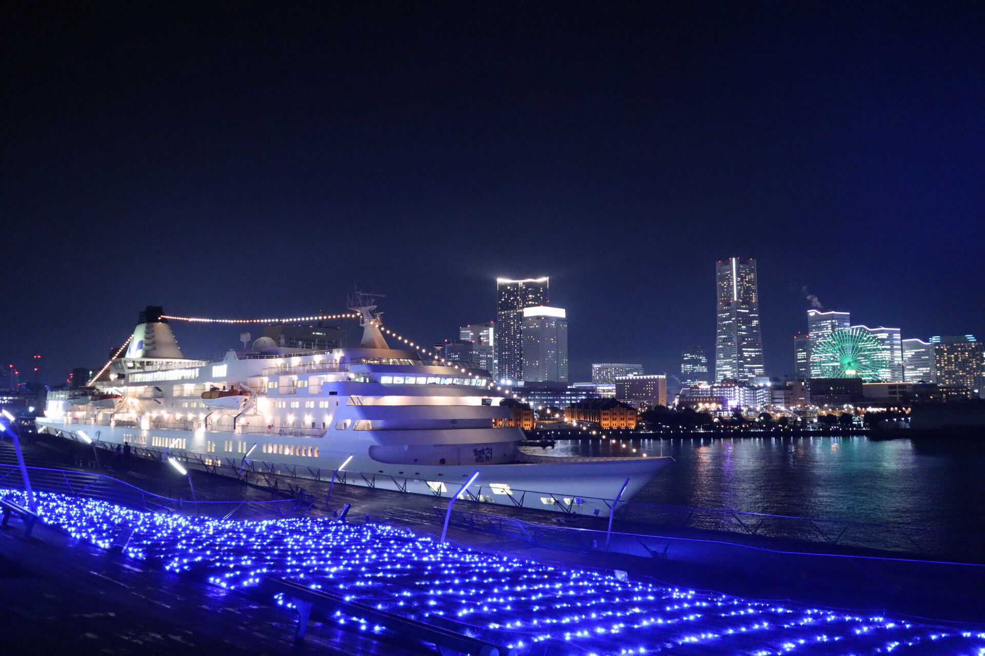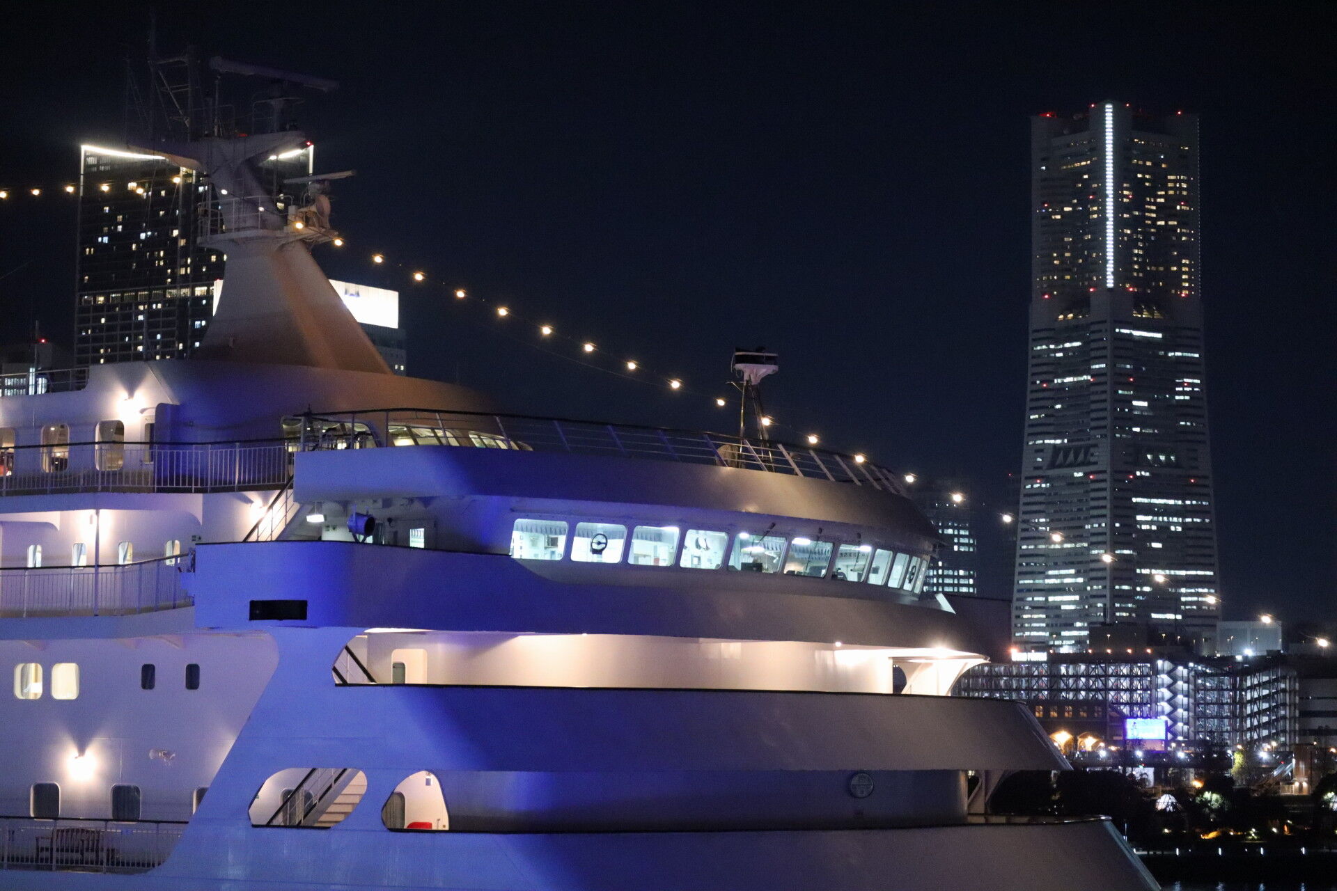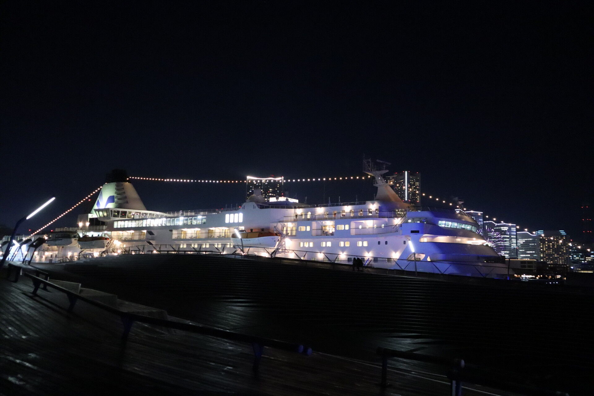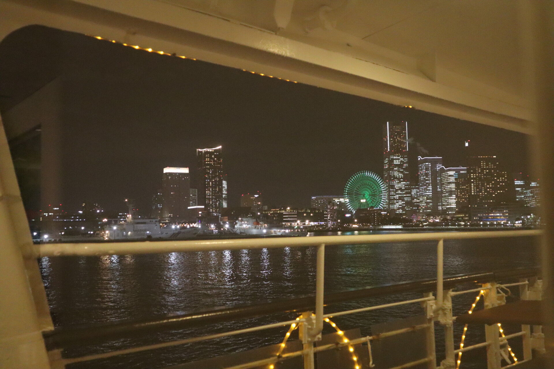 大さん橋に停泊するぱしふぃっくびいなすが見えます。