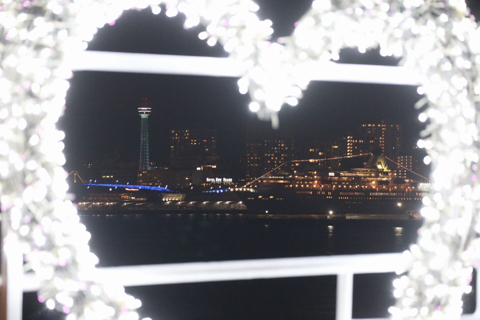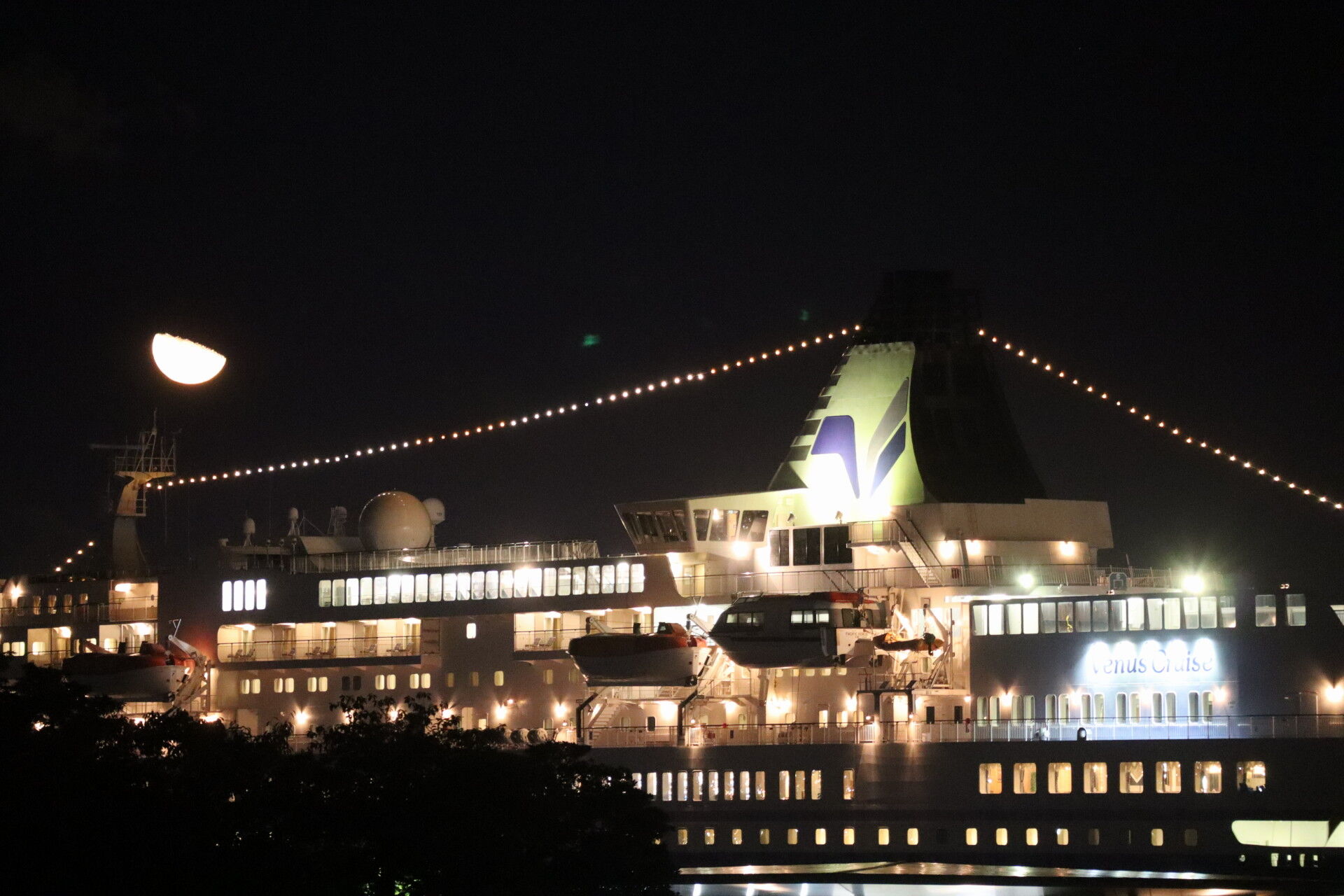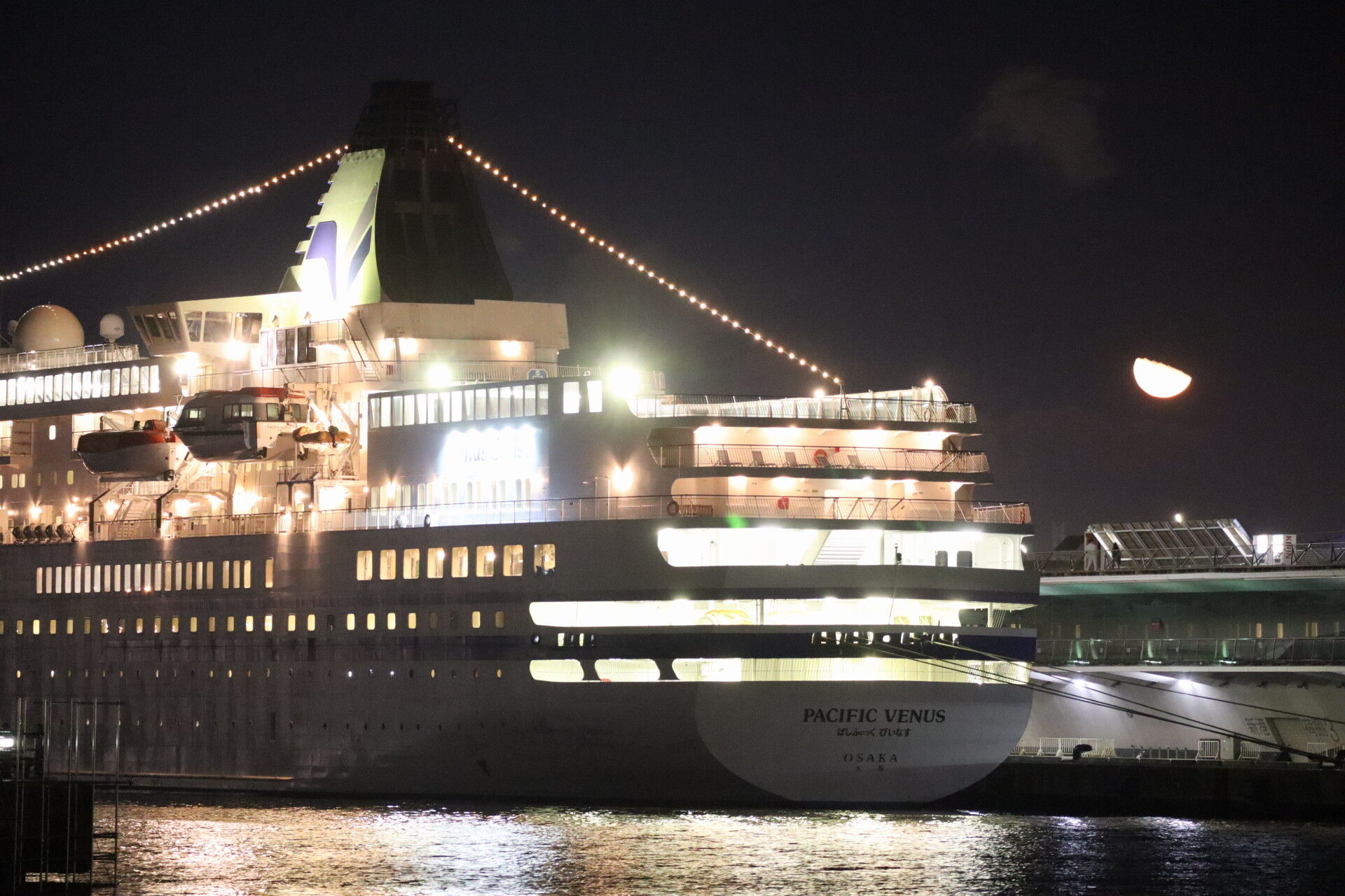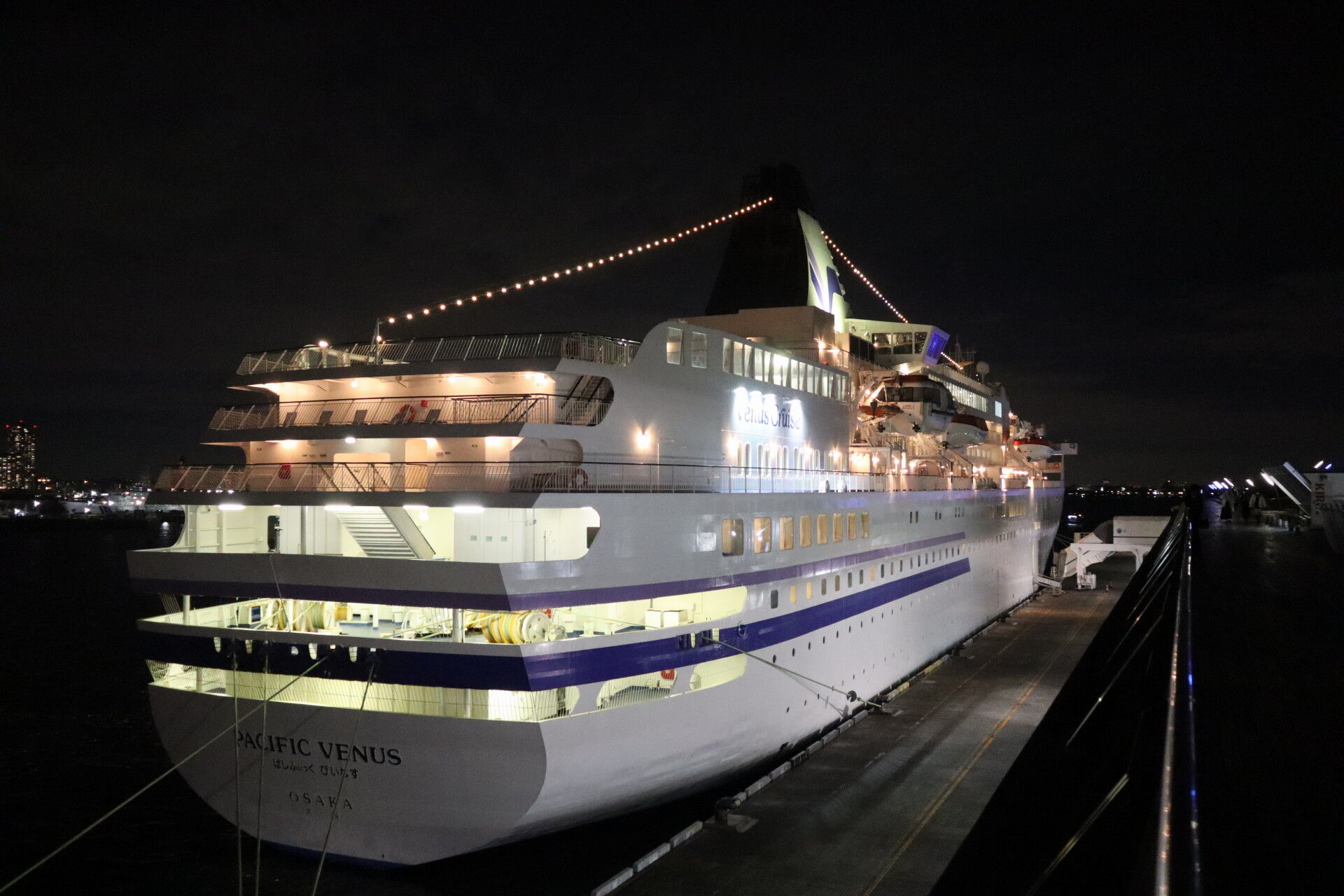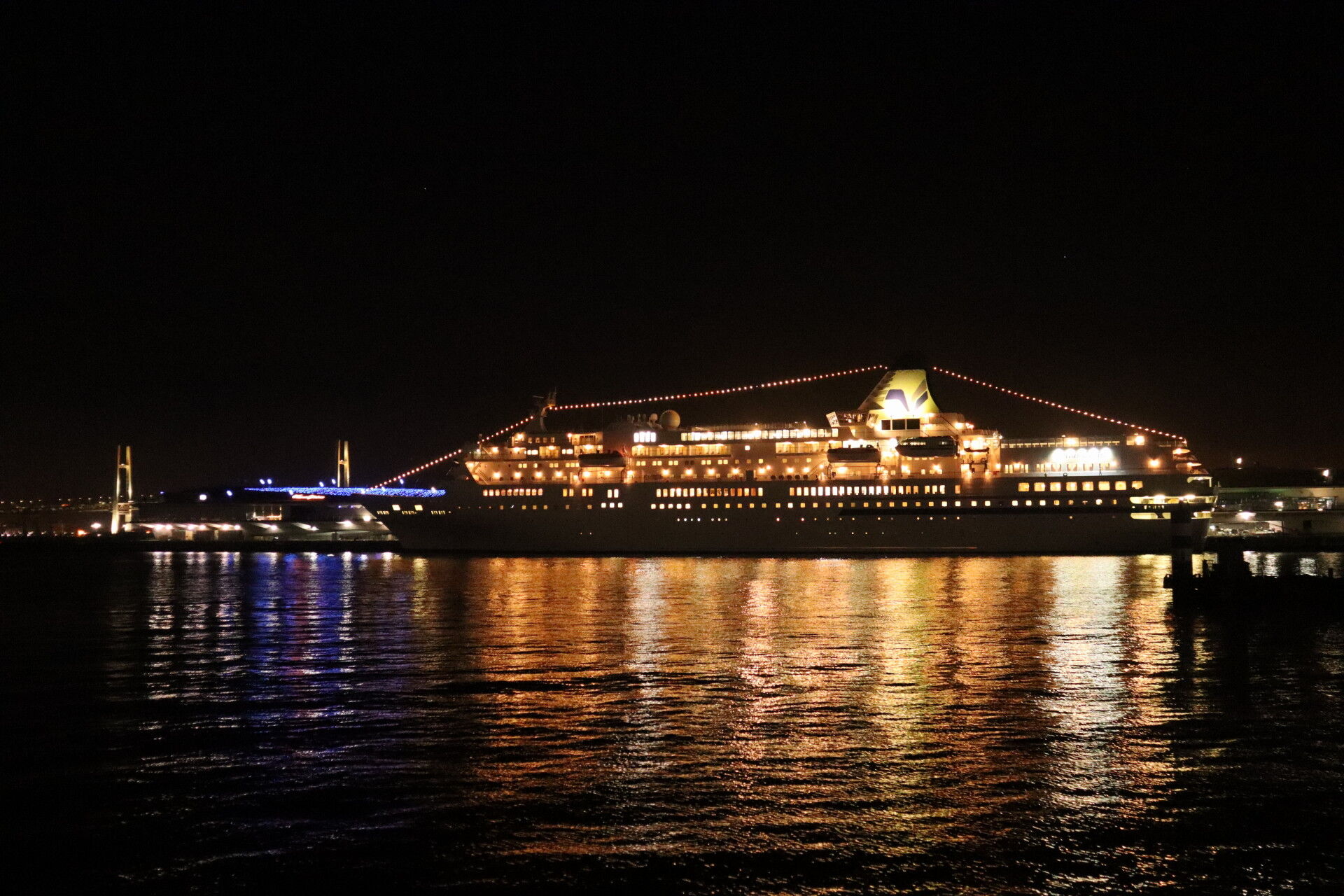 大さん橋に停泊するぱしふぃっくびいなすが見えます。