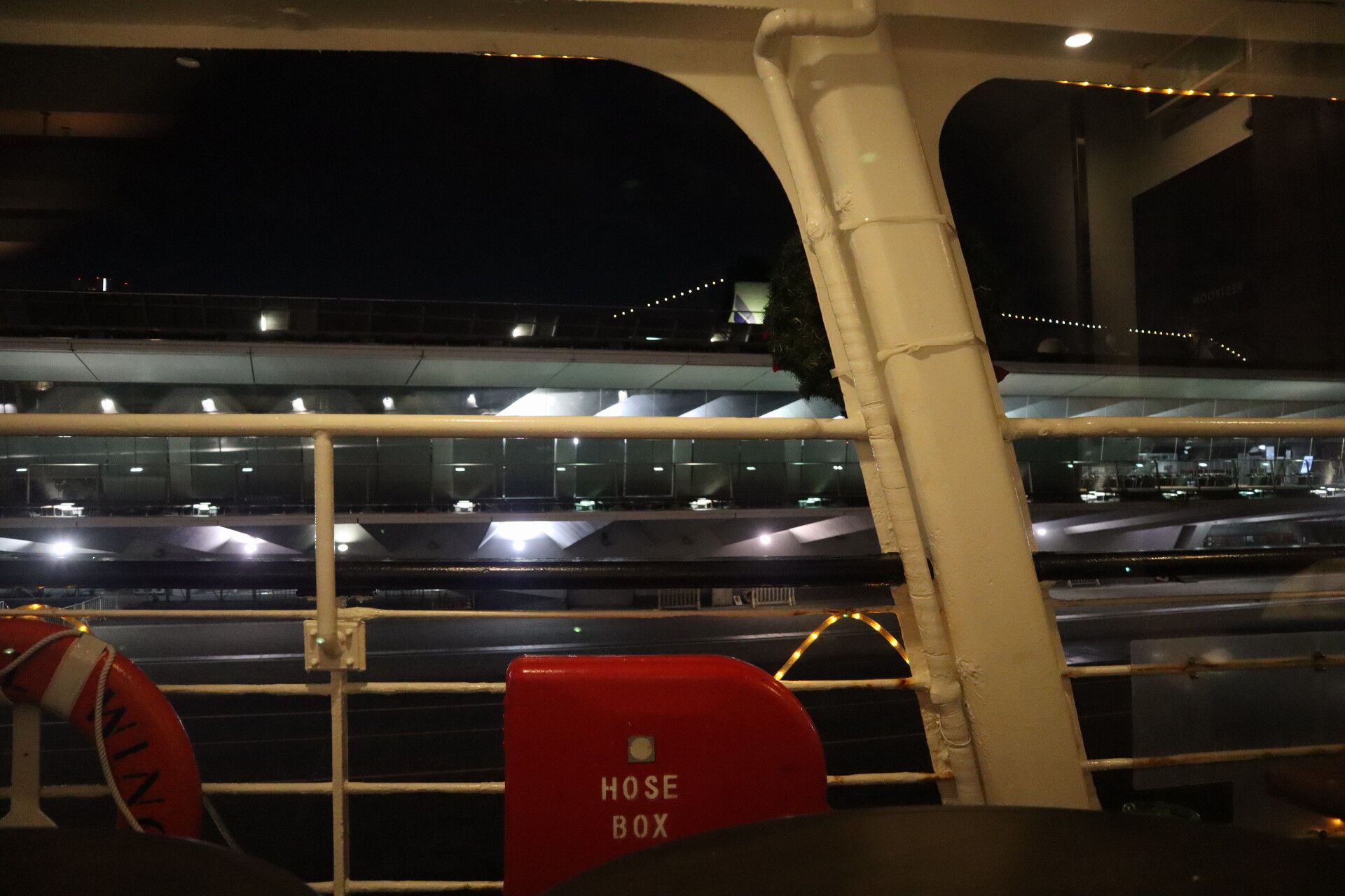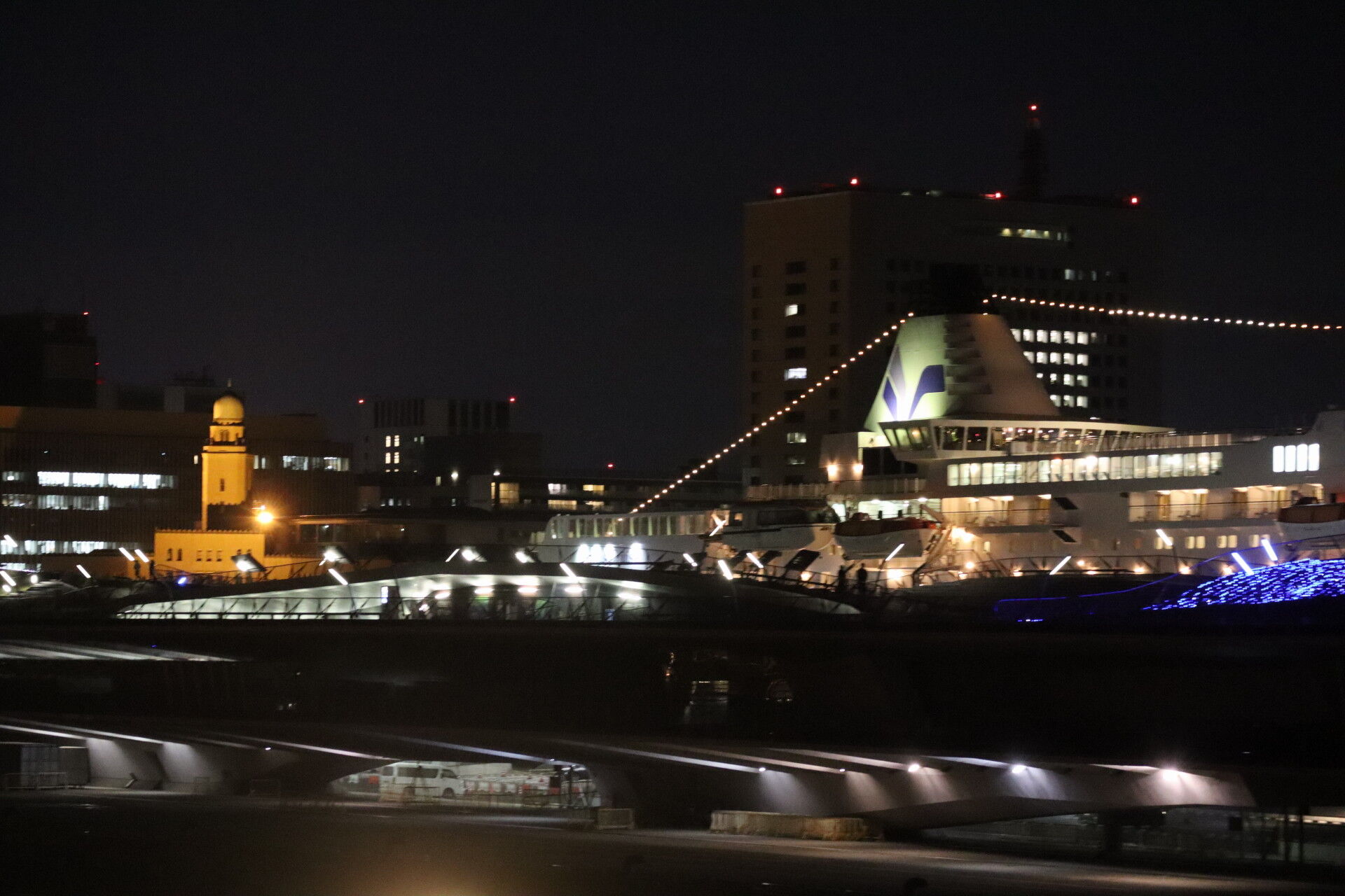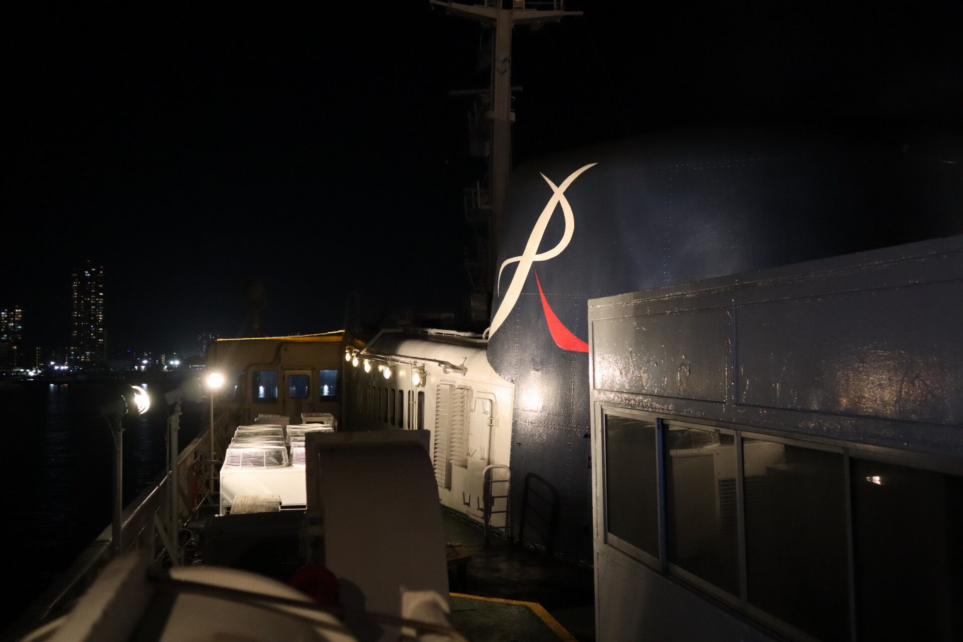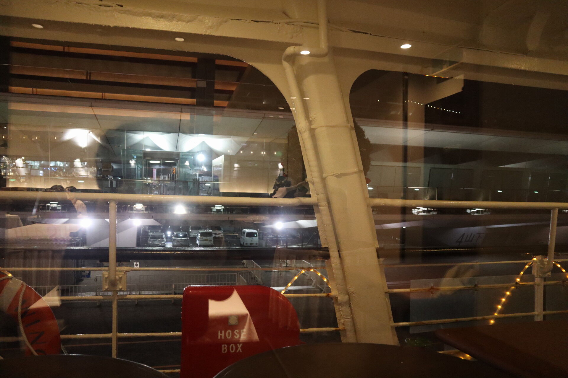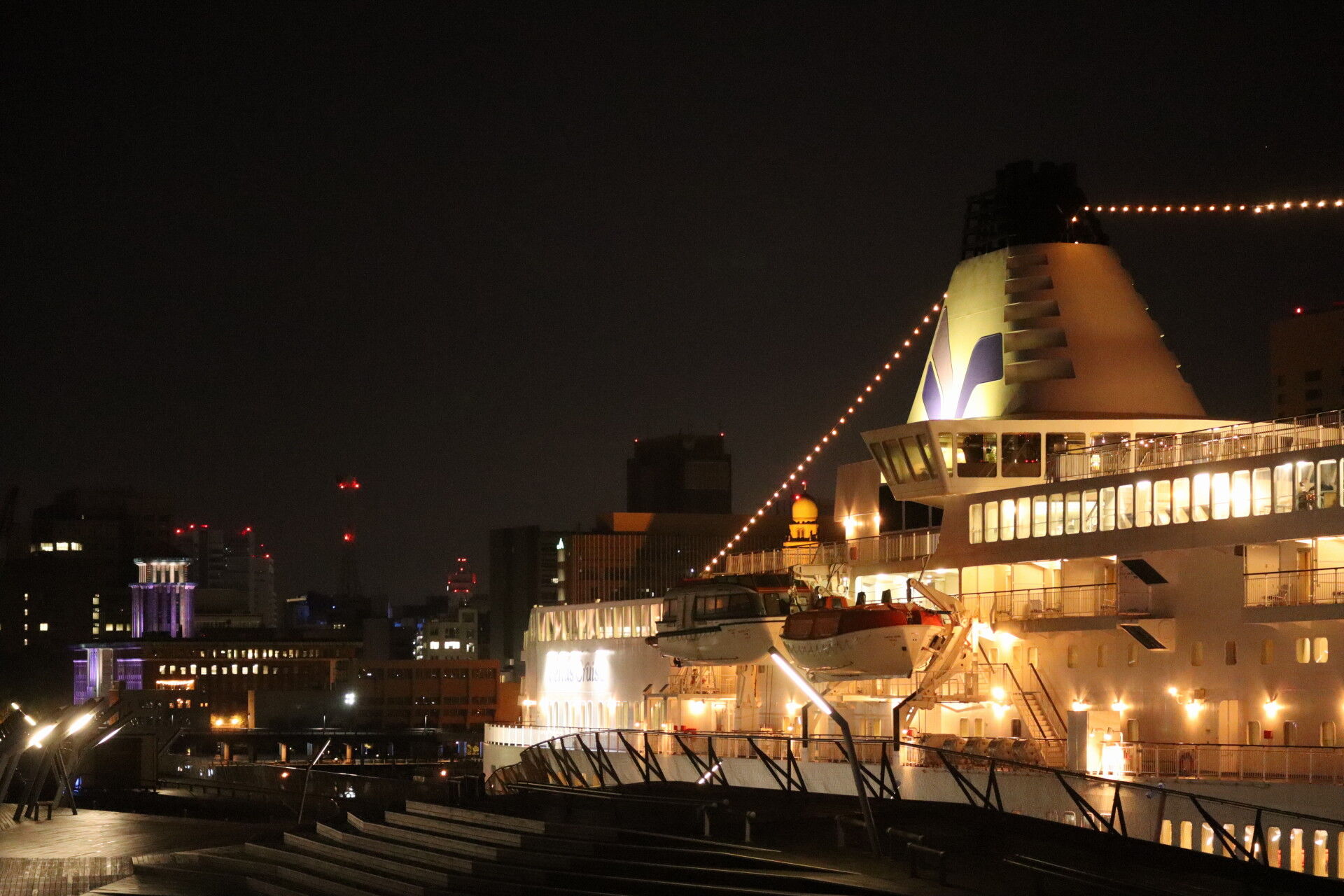 船は後進して大桟橋と距離を取ってから向きを変えるのですが、それも気づきにくい…優秀な客船の匂いを感じましょう。