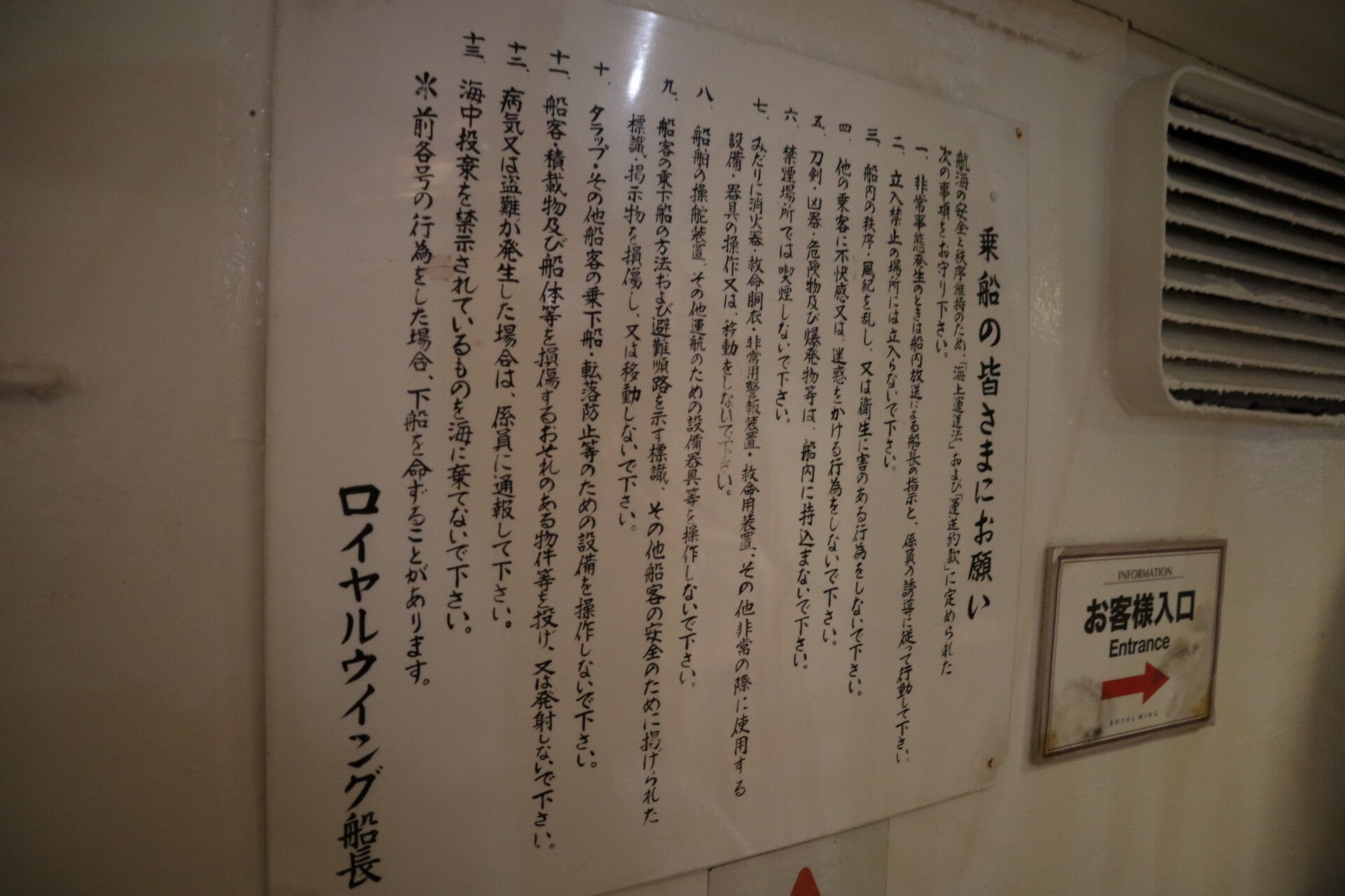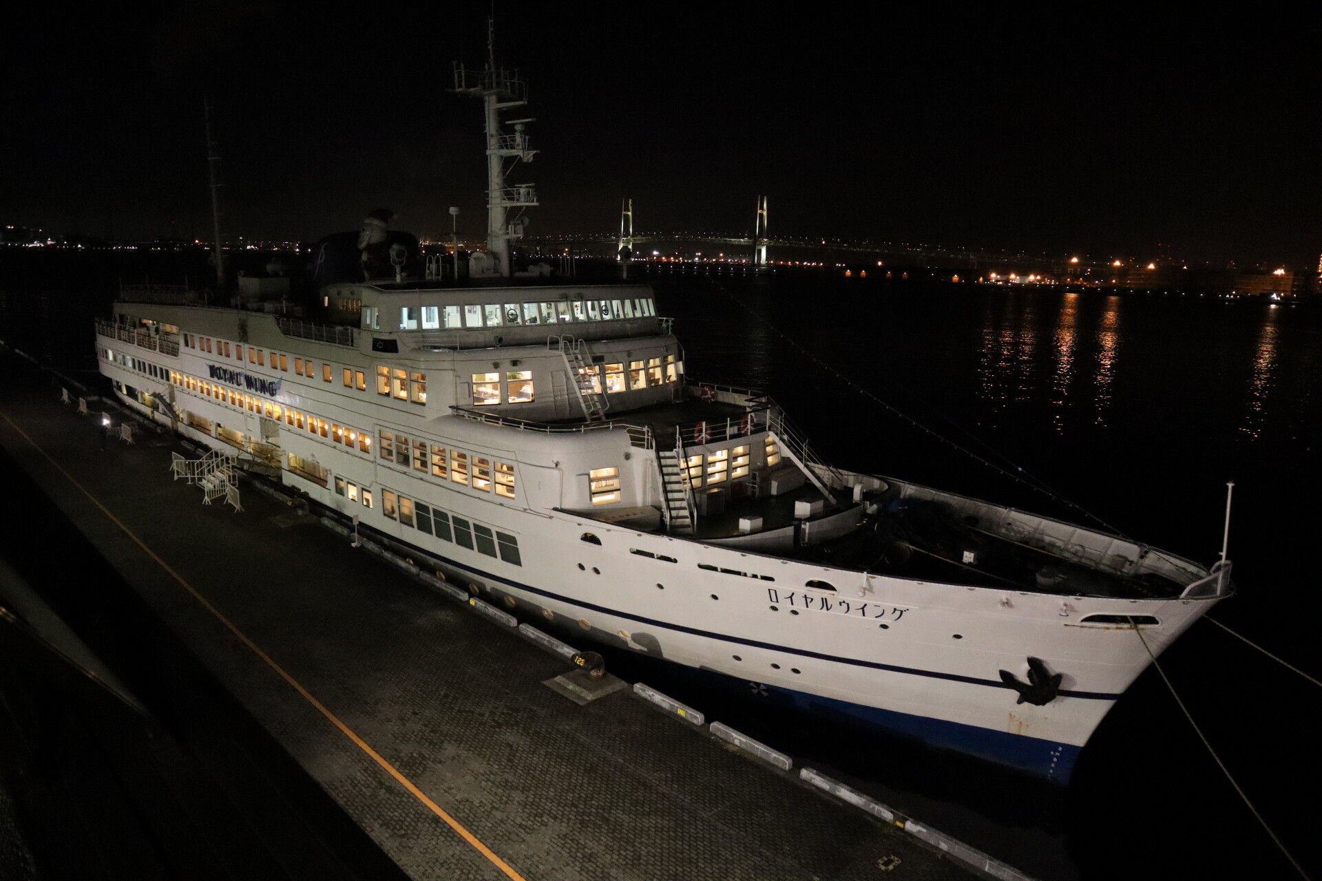 そして1988年にレストランシップへ改造され、ロイヤルウィングと名を改めて横浜にやってきました。運航会社は藤木企業(横浜港の荷役作業などを行う企業。ポートサービスの親会社)が設立したニッポン・シーラインという会社だったようで、1989年に開催された横浜博覧会を見越したものだったのでしょうか。