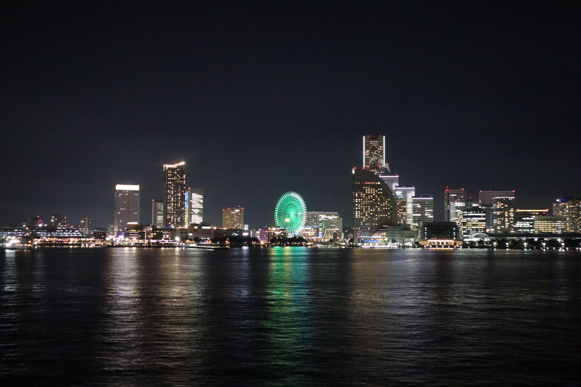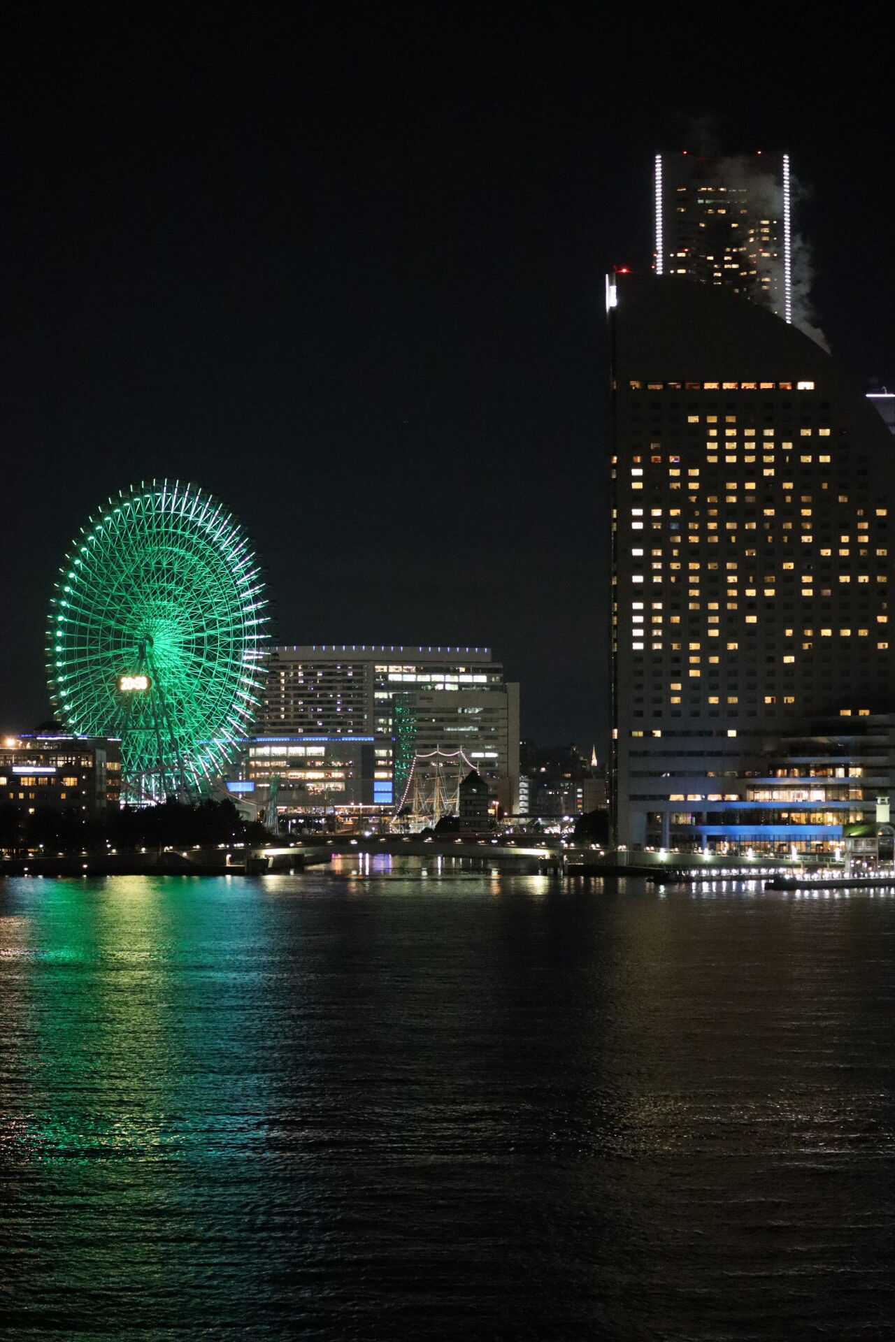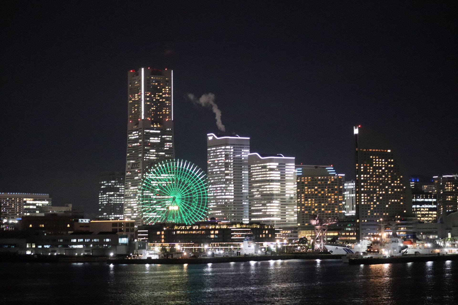 船は向きを変え、こちらにみなとみらい地区が見えてきました。