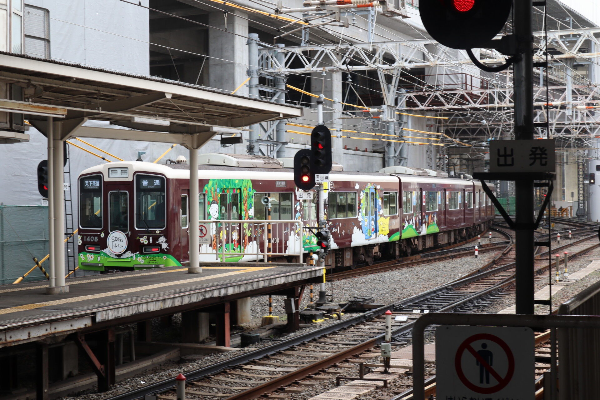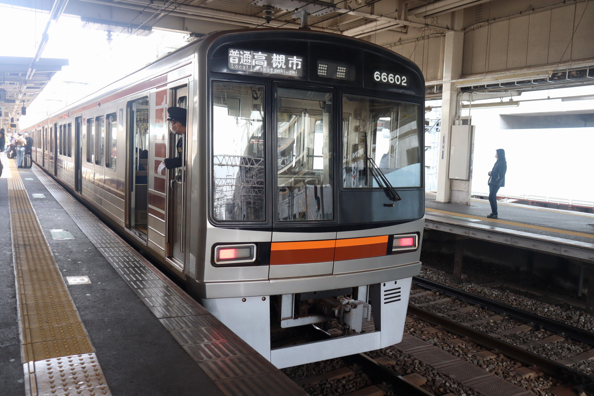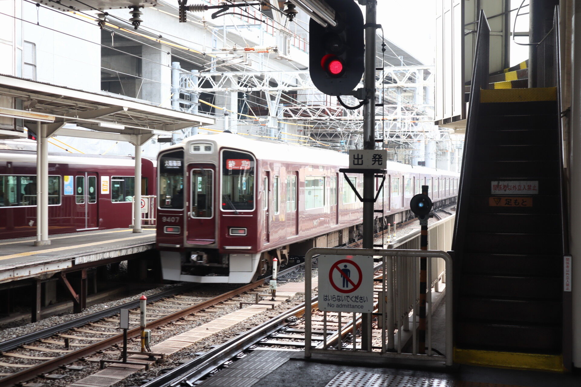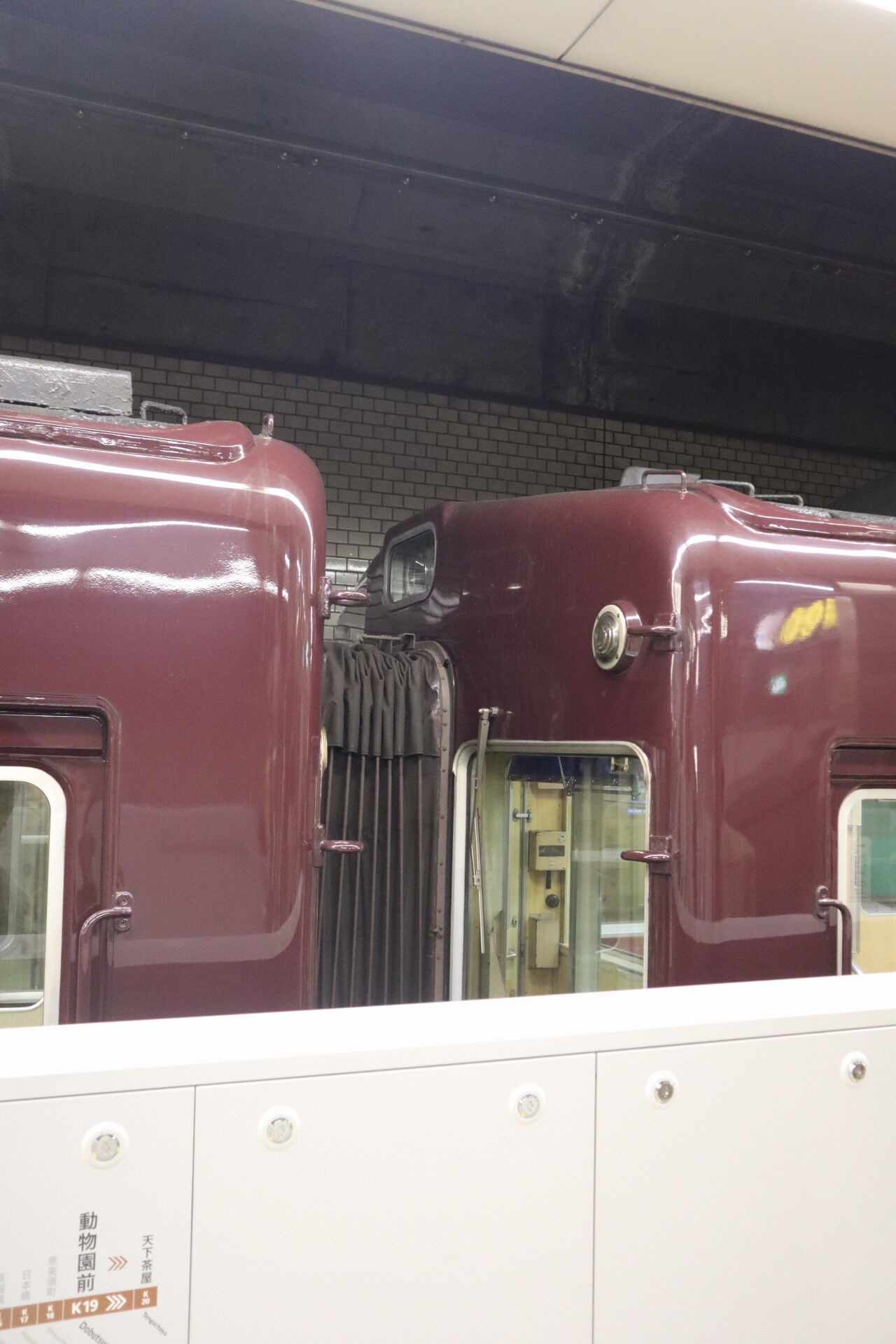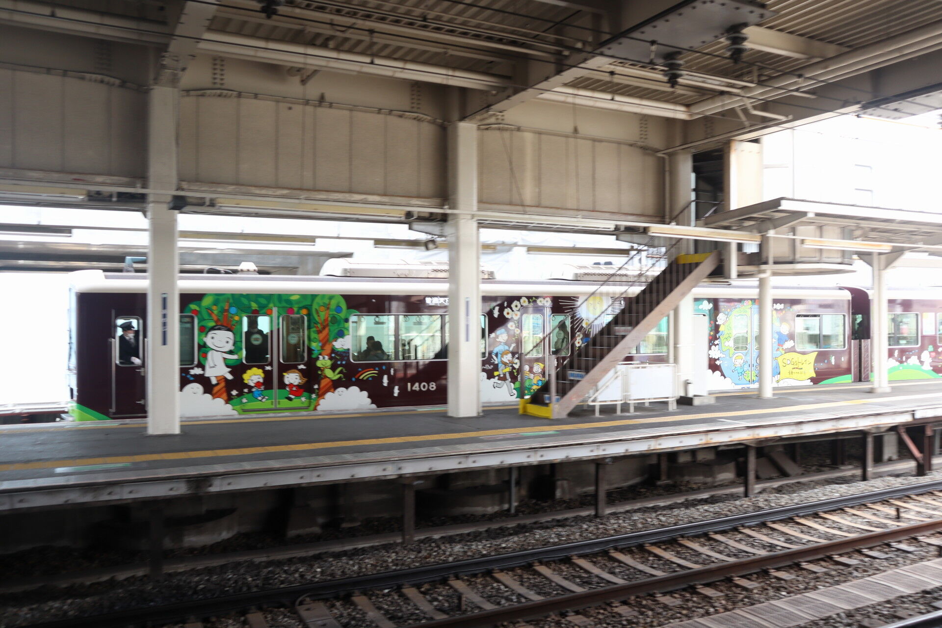 阪急からの直通車が入線。ほんとうにツヤで顔が見える……。