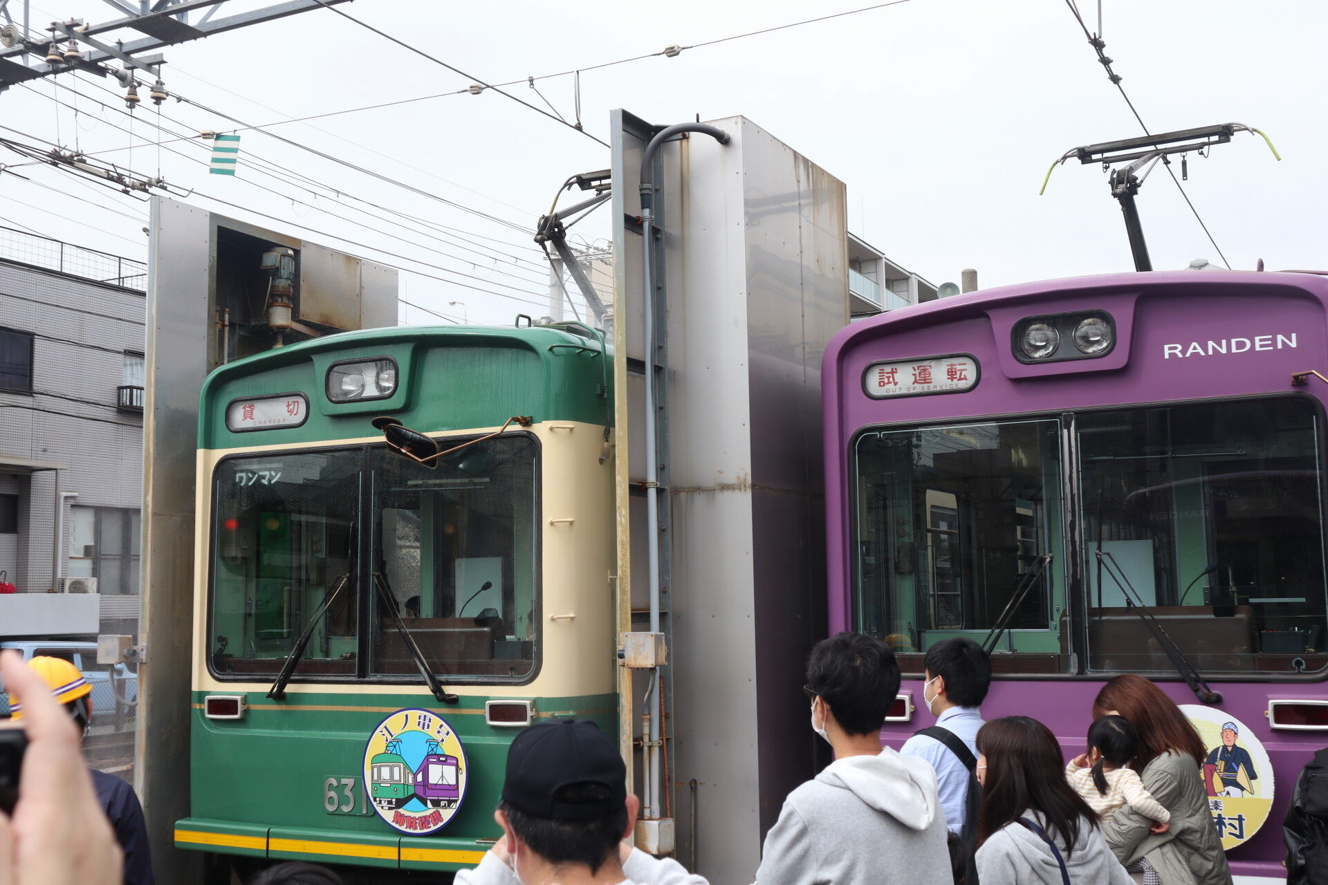 嵐電では、姉妹提携先の江ノ電カラーを再現した江ノ電号が運行中です!