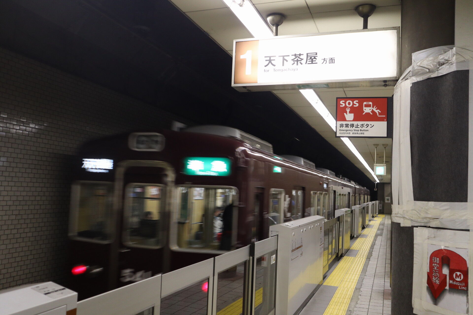 ここから大阪メトロ堺筋線に乗って、淡路経由で阪急京都線に乗り換えて西院駅へ向かいます。