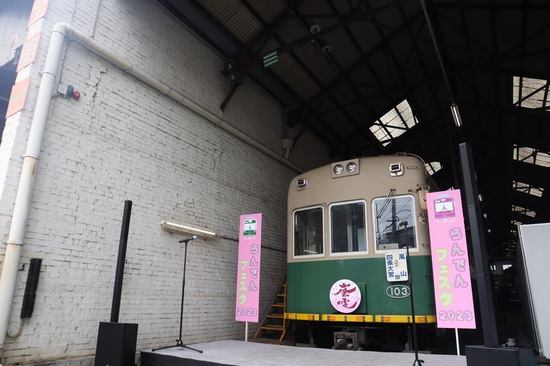 ステージの前にモボ103、残り2両となったツートンカラーの車両です。