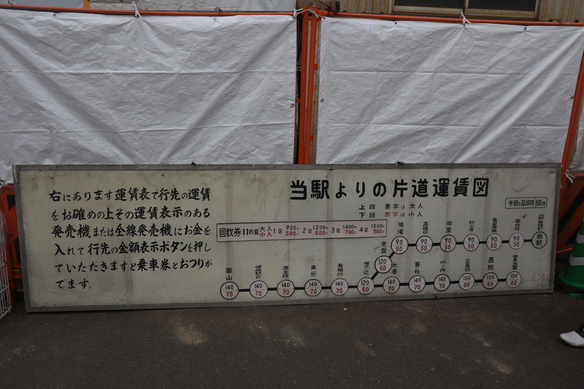 北野白梅町駅にあったらしき運賃図ですね。
