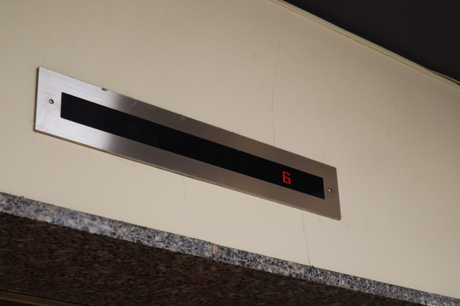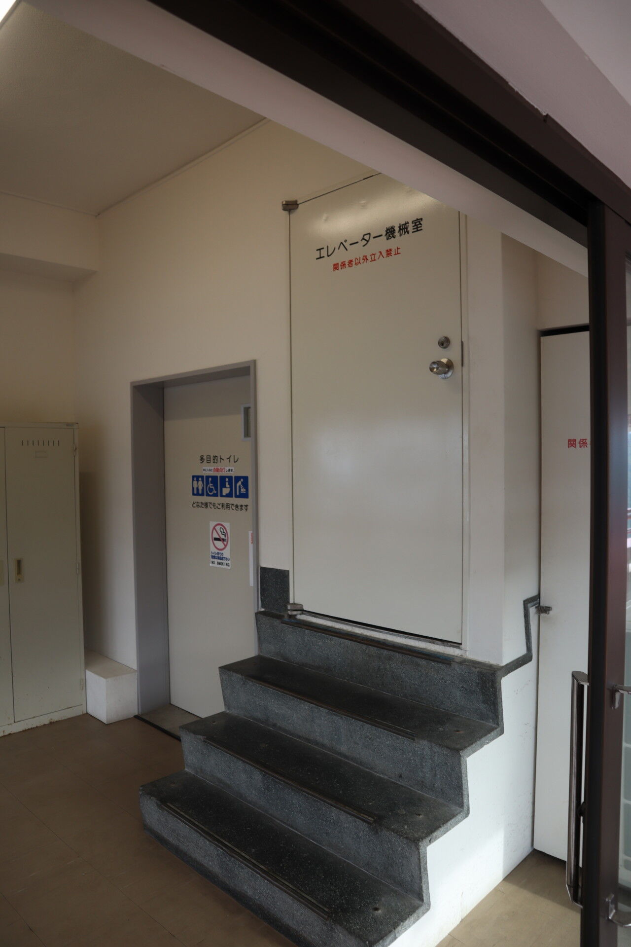 エレベーター機械室の隣にバリアフリートイレがあるんですねぇ、面白い。