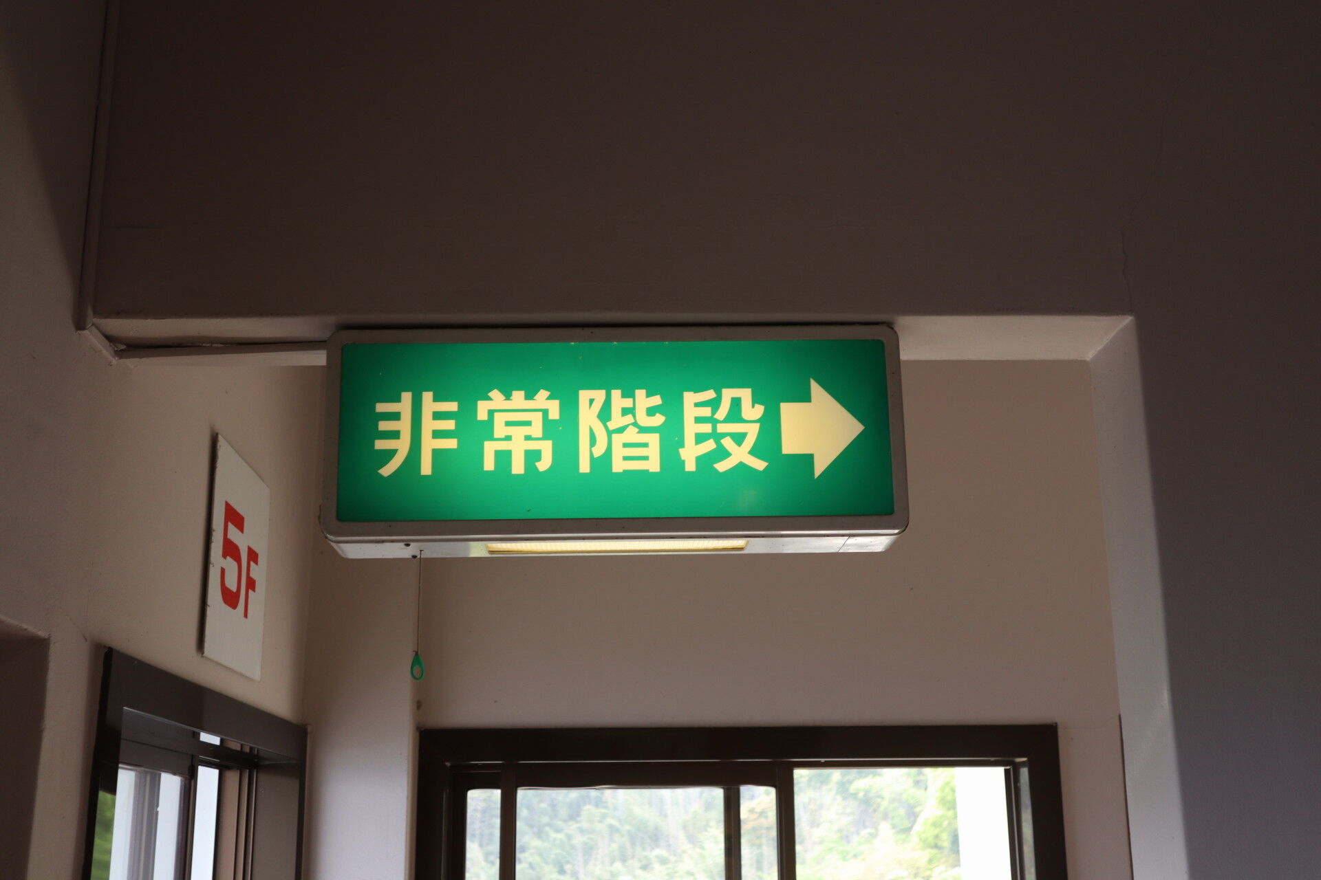 ピクトサインではない非常階段ロゴが時代を感じさせます。