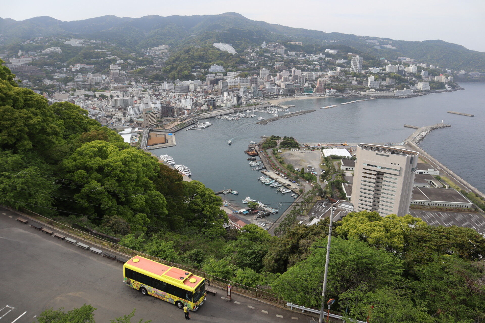 錦ヶ浦からバスに乗って熱海銀座方面へ向かいます。