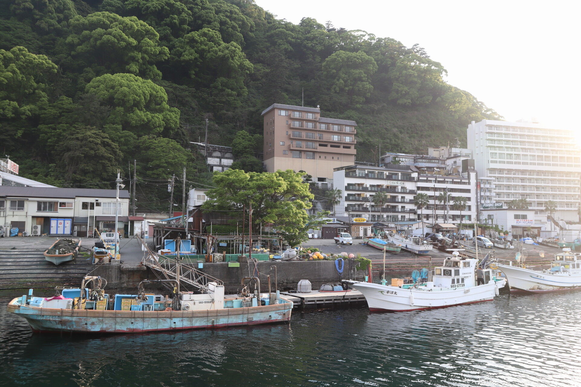 多くの漁船が並んでいます。熱海は鯵とか地ものって並んでますけどここの漁船がとってるんですかね?