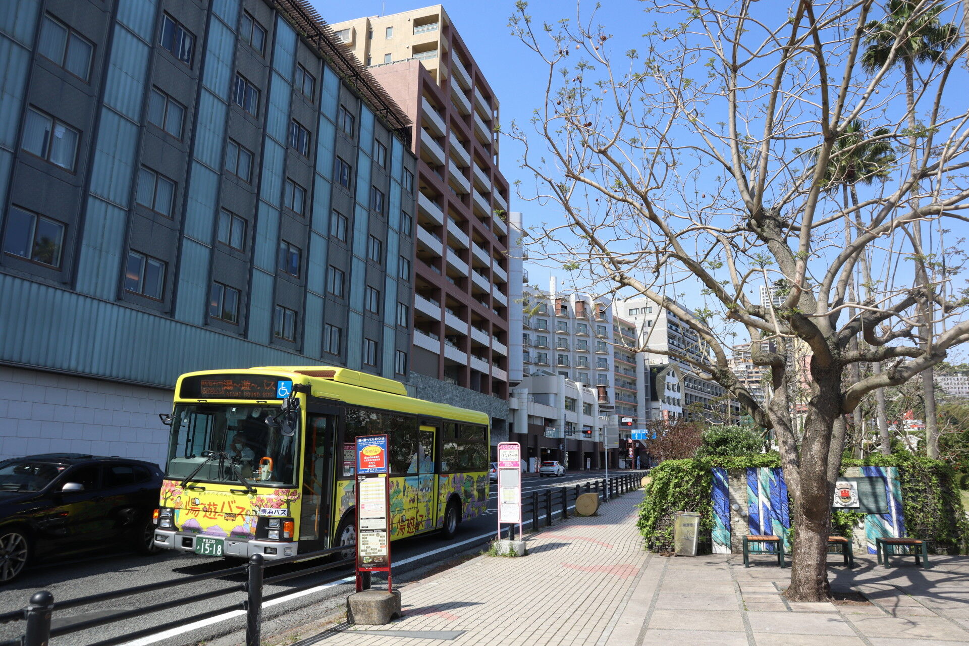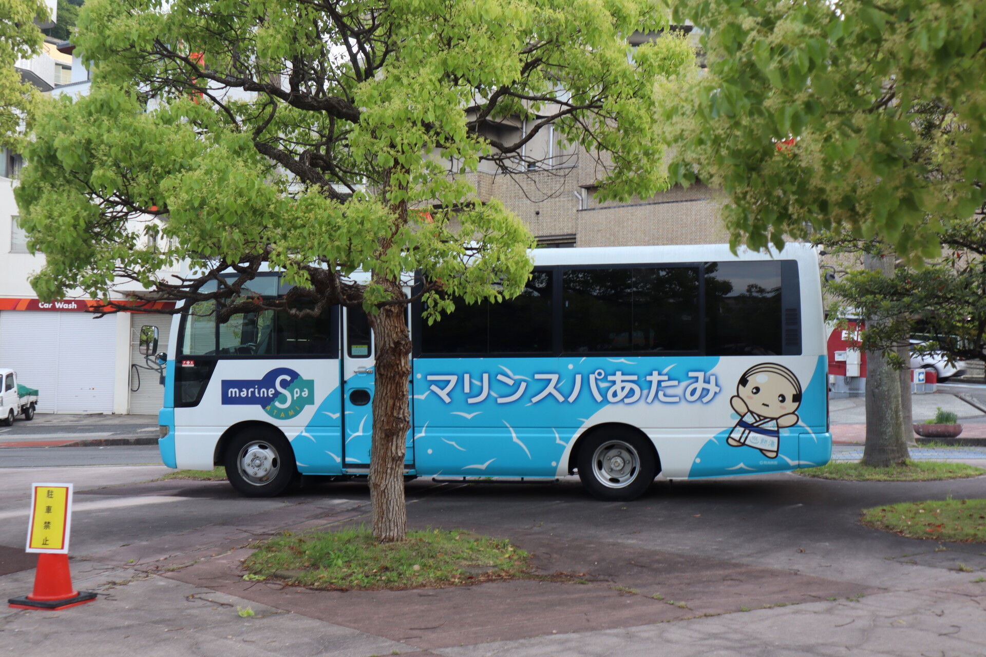 マリンスパ熱海の送迎バスにはあつおがいます。