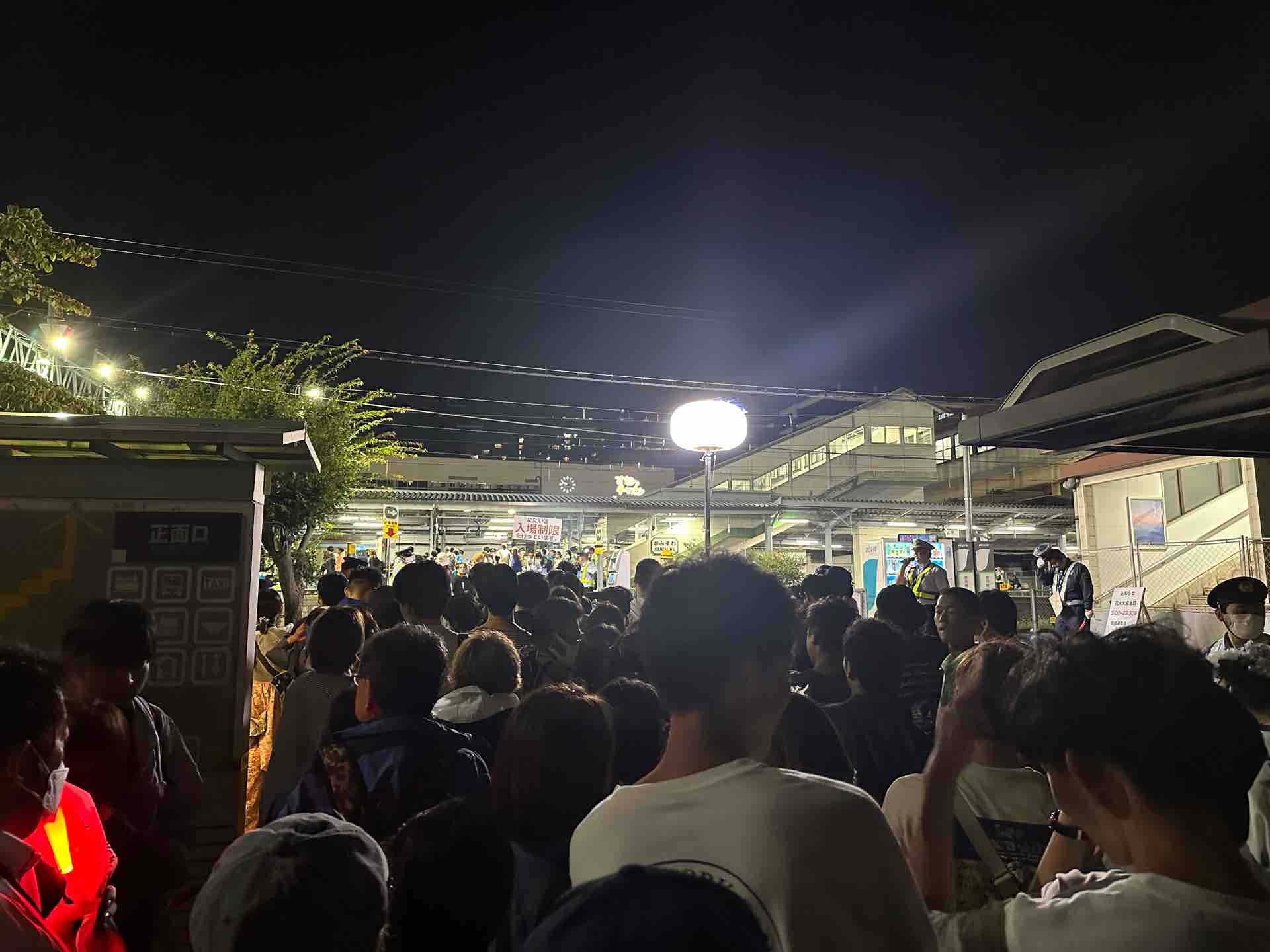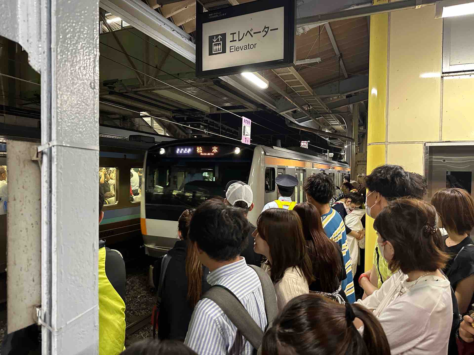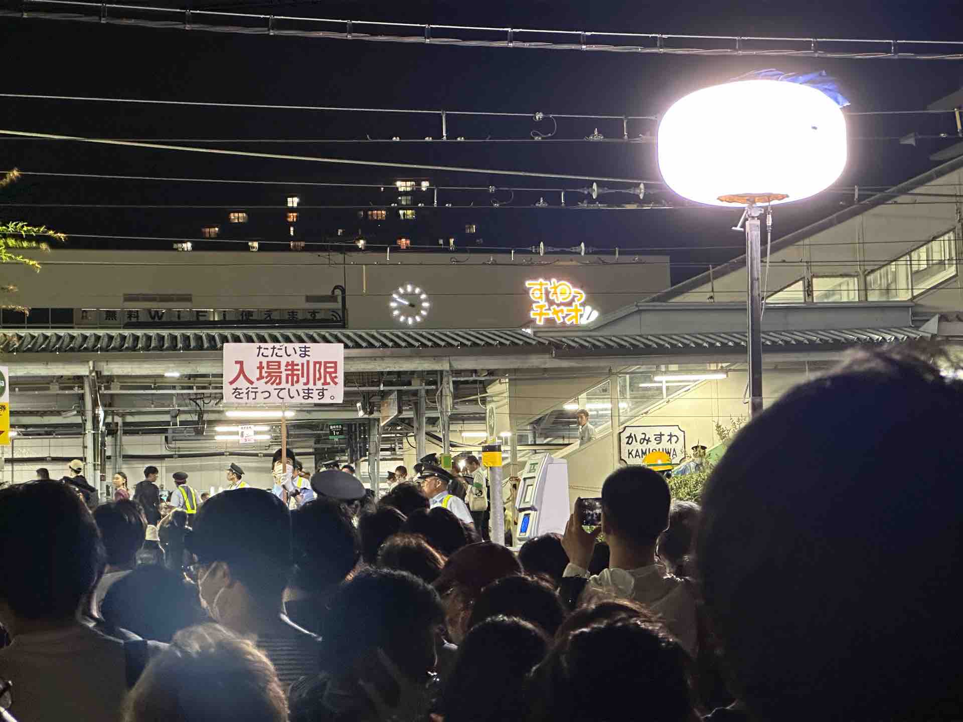 まず上諏訪駅に人が押し寄せて入場規制が行われます。