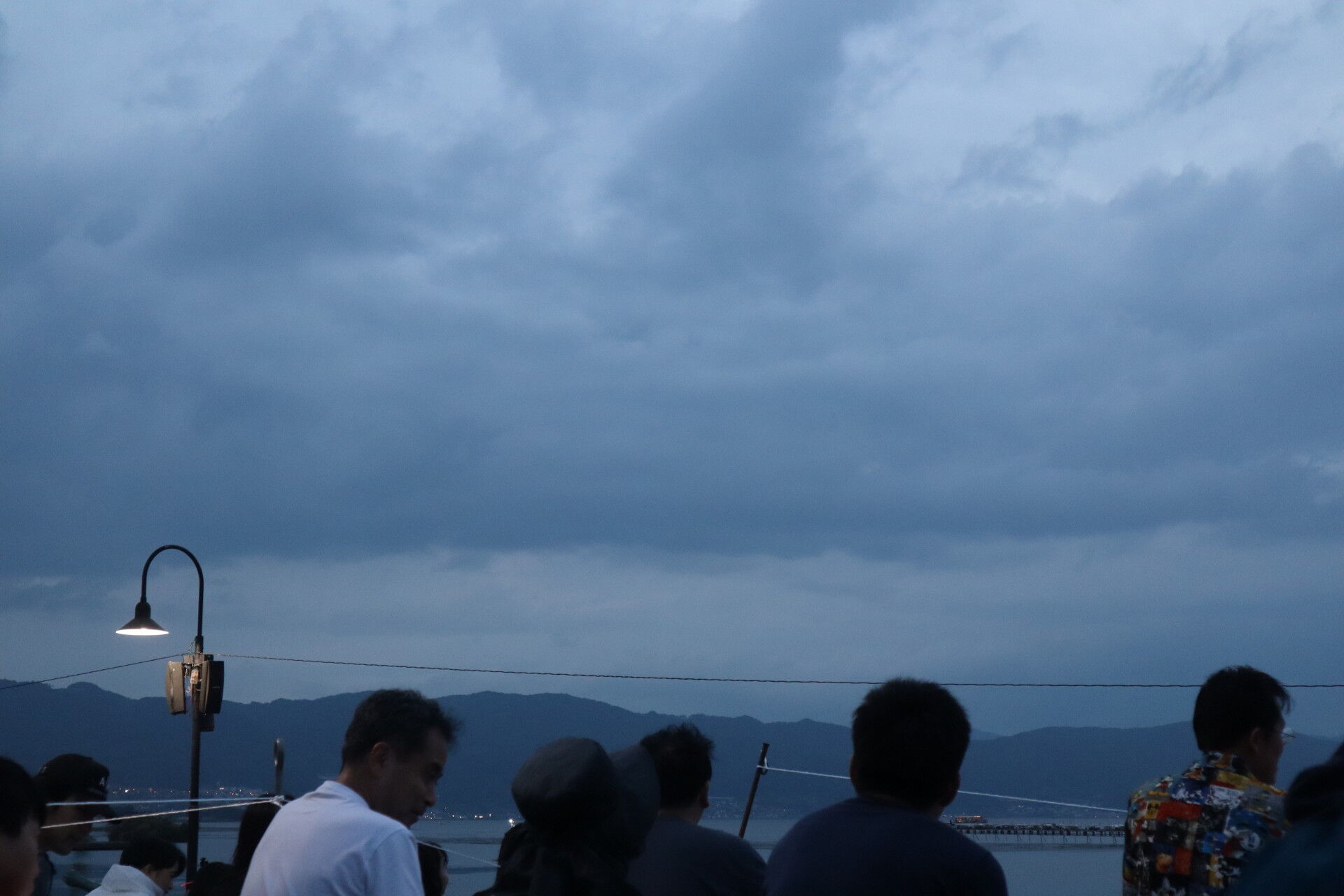 ロープで区切られた区画だけが指定されていて、その中でレジャーシートを敷きます。もう寝そべるくらいの広いところをとっている人もいたり。私たちは大手レジャーシートの間にちょこちょこと座布団みたいなのを敷いて鑑賞します。結構腰大変なことになりますね。次来ることがあれば、なんか考えよう。