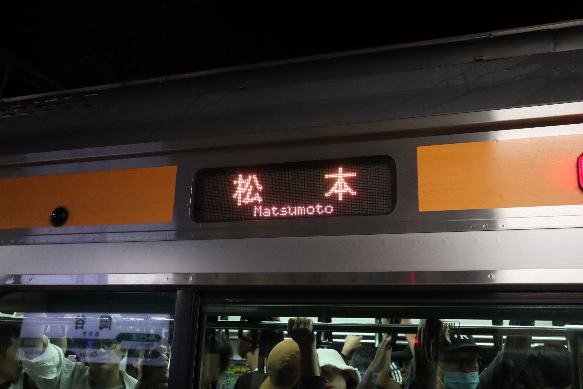 あずさが来ても、入場できません。だから臨時の普通列車になんとしても乗って、松本まで移動しなくてはなりません。携帯の電波も通じにくい…。