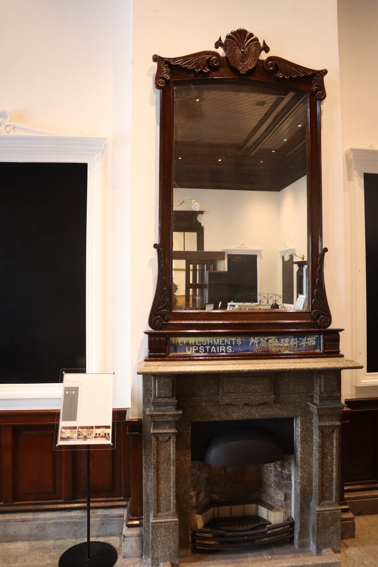 記念入場券を買いに来たみどりの窓口には立派な暖炉。