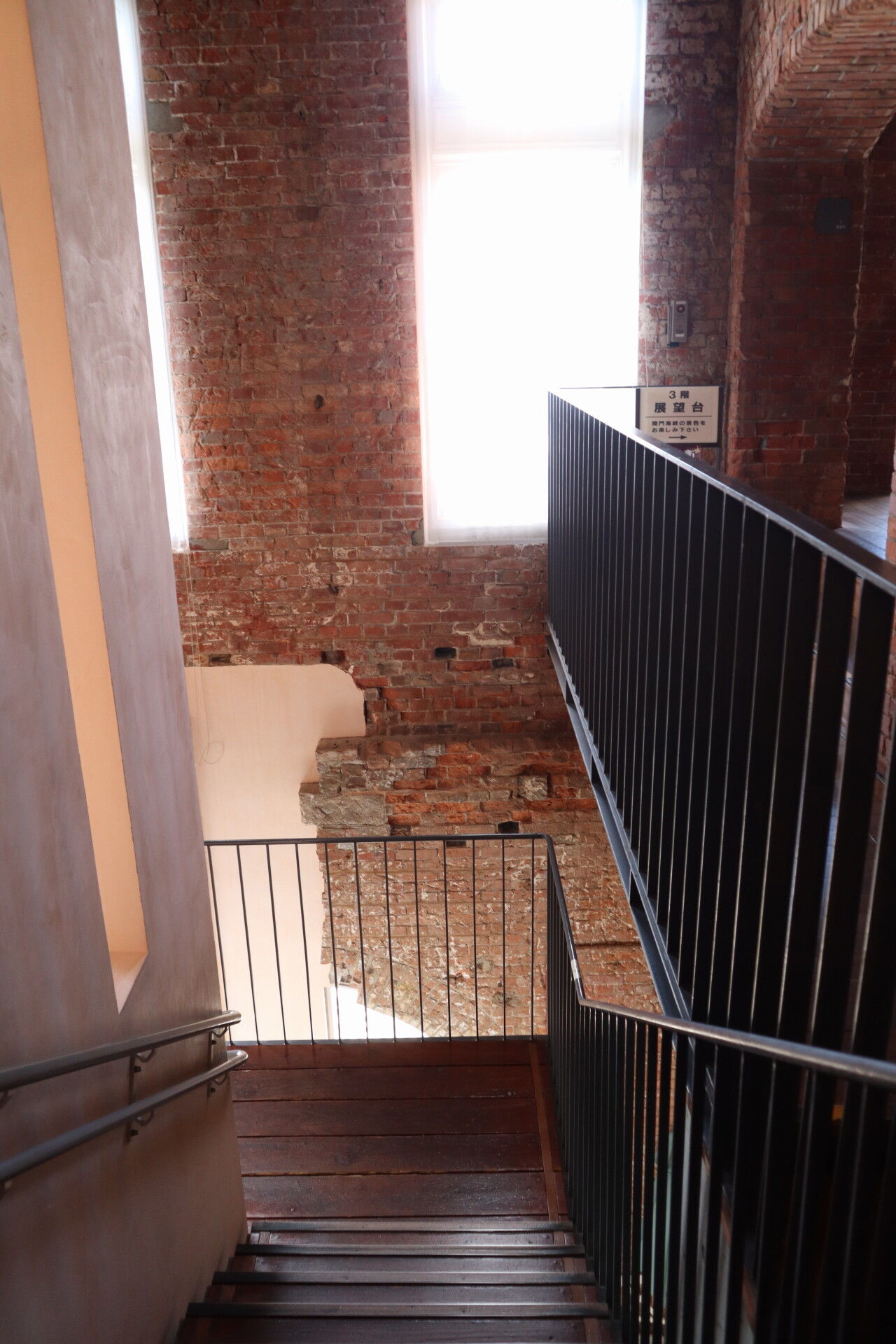 壁で床の重量を支えていたのです。現在ではそのような床はなく、館内はレンガ壁の内側にさっぱり収まるような内装構造物が別に作られています。