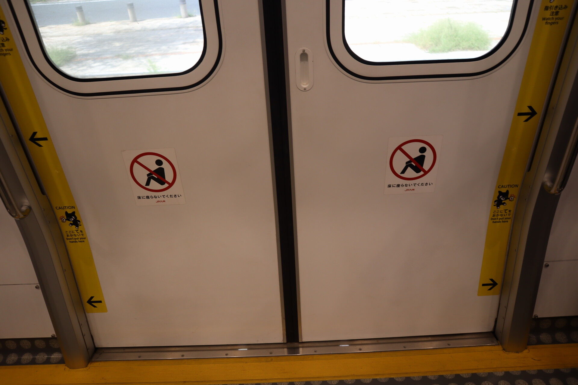 JR九州、最近は座席を減らす改造をあちこちで進めているのですが、それに対してドア前に座り込むことを禁止するシールを貼っています。いわゆる「地べたリアン」ってやつでしょうけども、東海道線では年に1度も見ないレアな人たち。こっちではそんなに習慣化されてるんでしょうか?