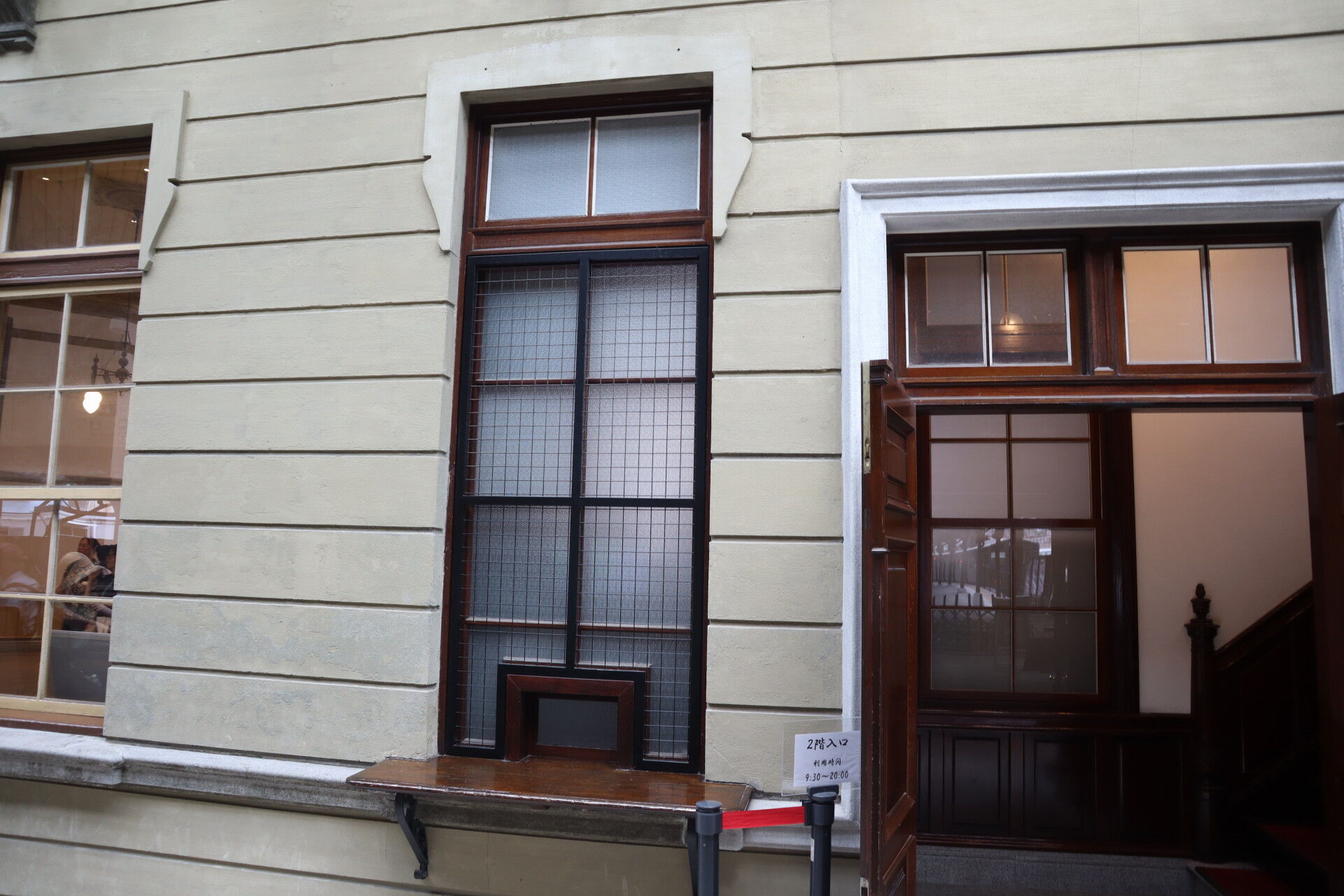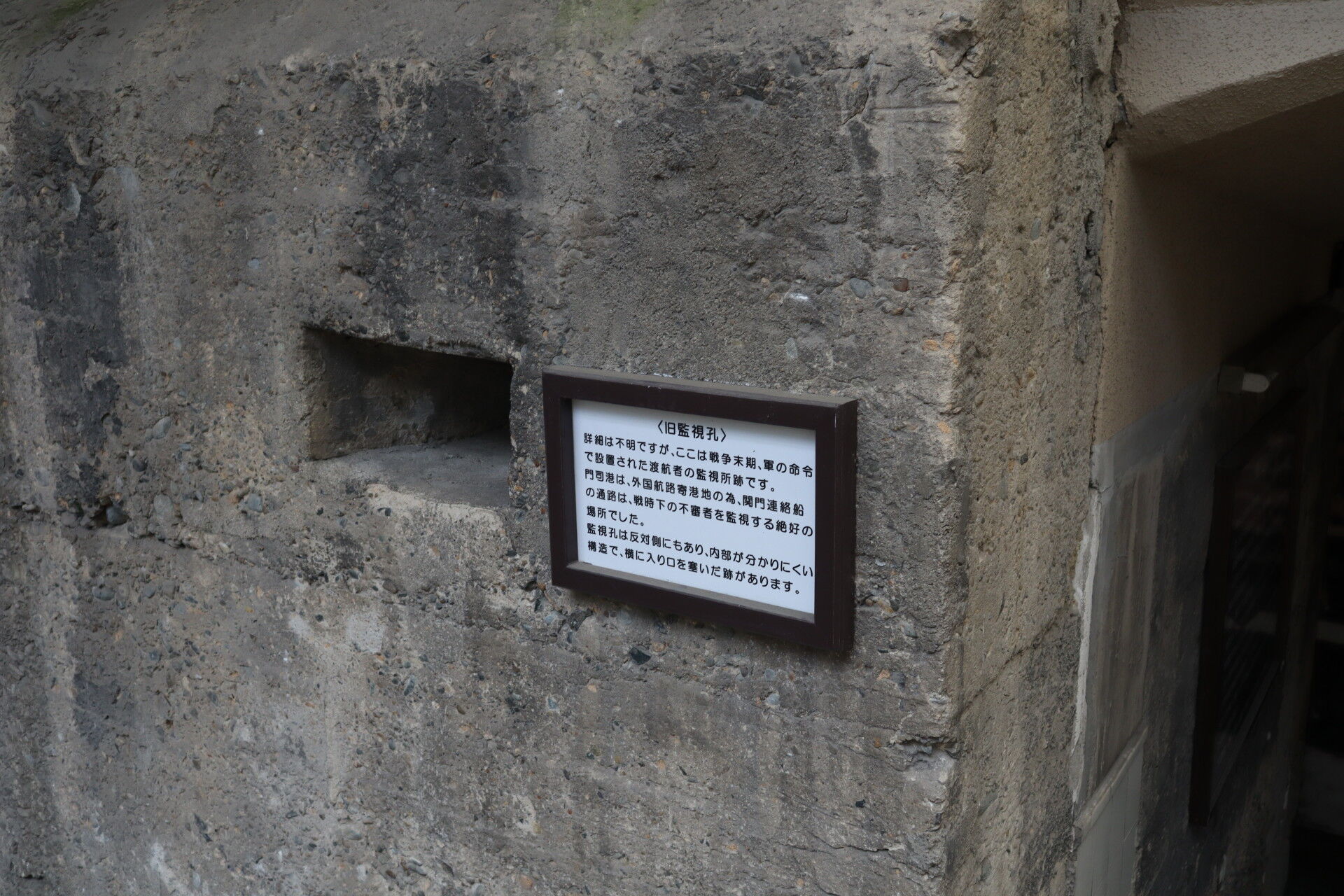 穴が空いていますが、これはかつて軍が通行人を監視していたと言われる窓の名残らしい。