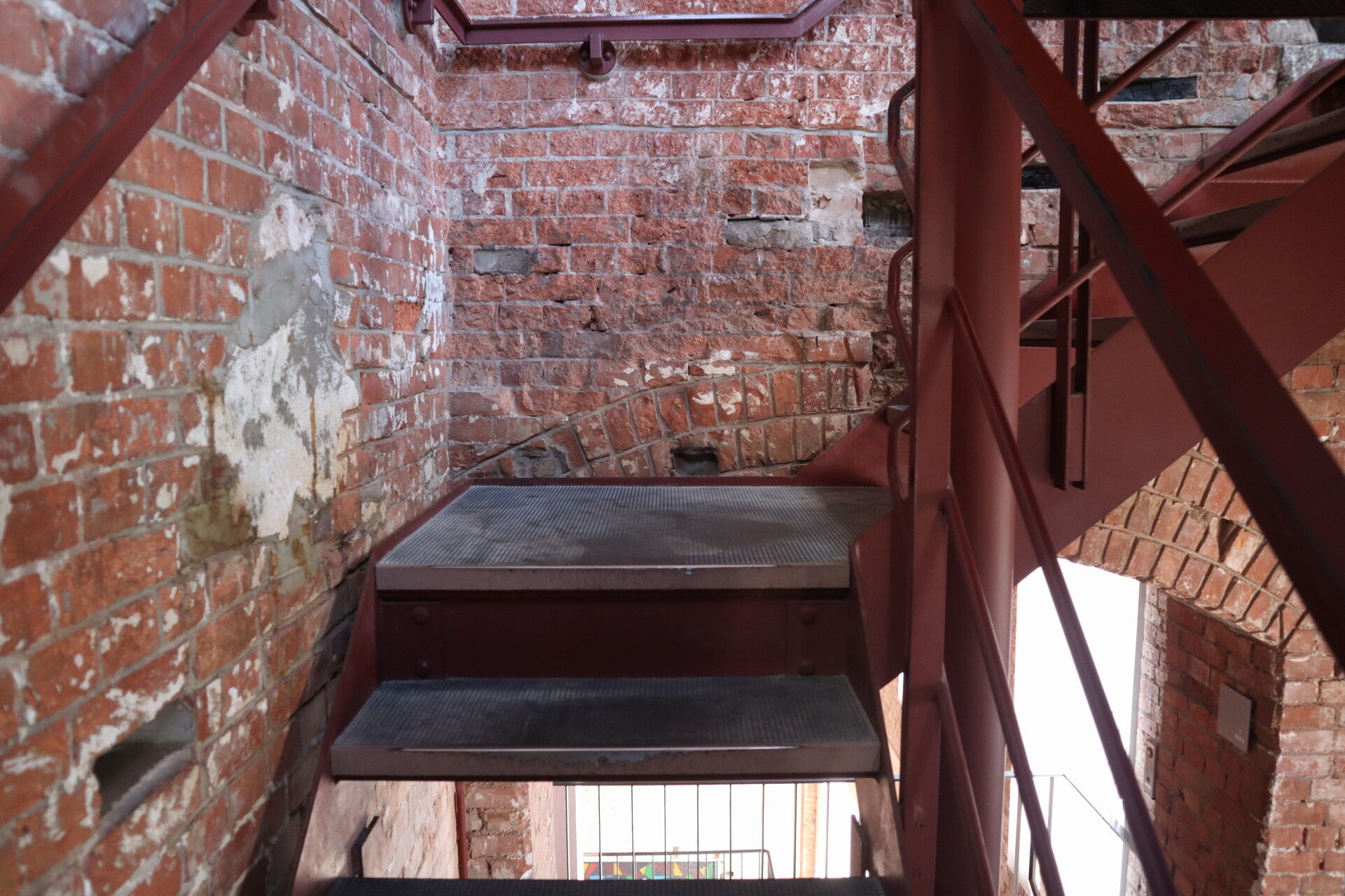 木骨の跡と鉄階段。
