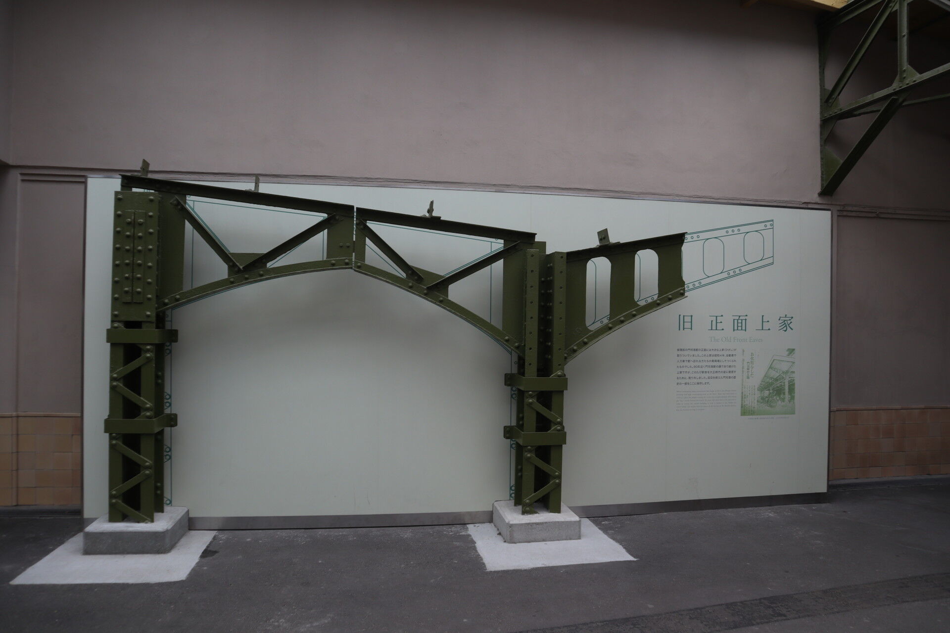 門司港駅を復元した際、正面にあった後付けの車寄せを撤去したそうですが、その鉄骨もまたそれはそれで歴史があるので、鉄骨を保存するというもの。