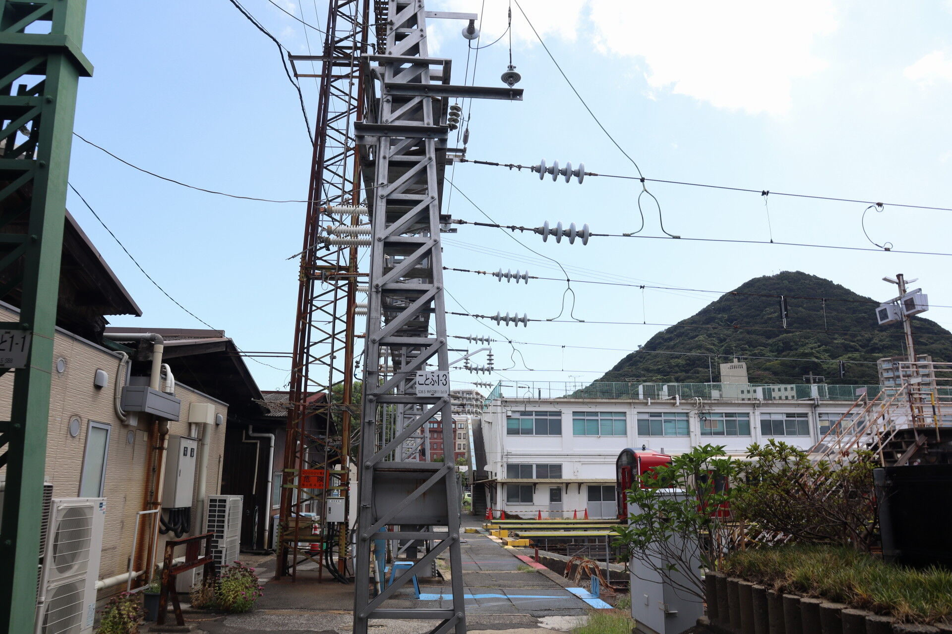 駅の隣は電留線。交流電化ゆえか碍子がゴツいです。