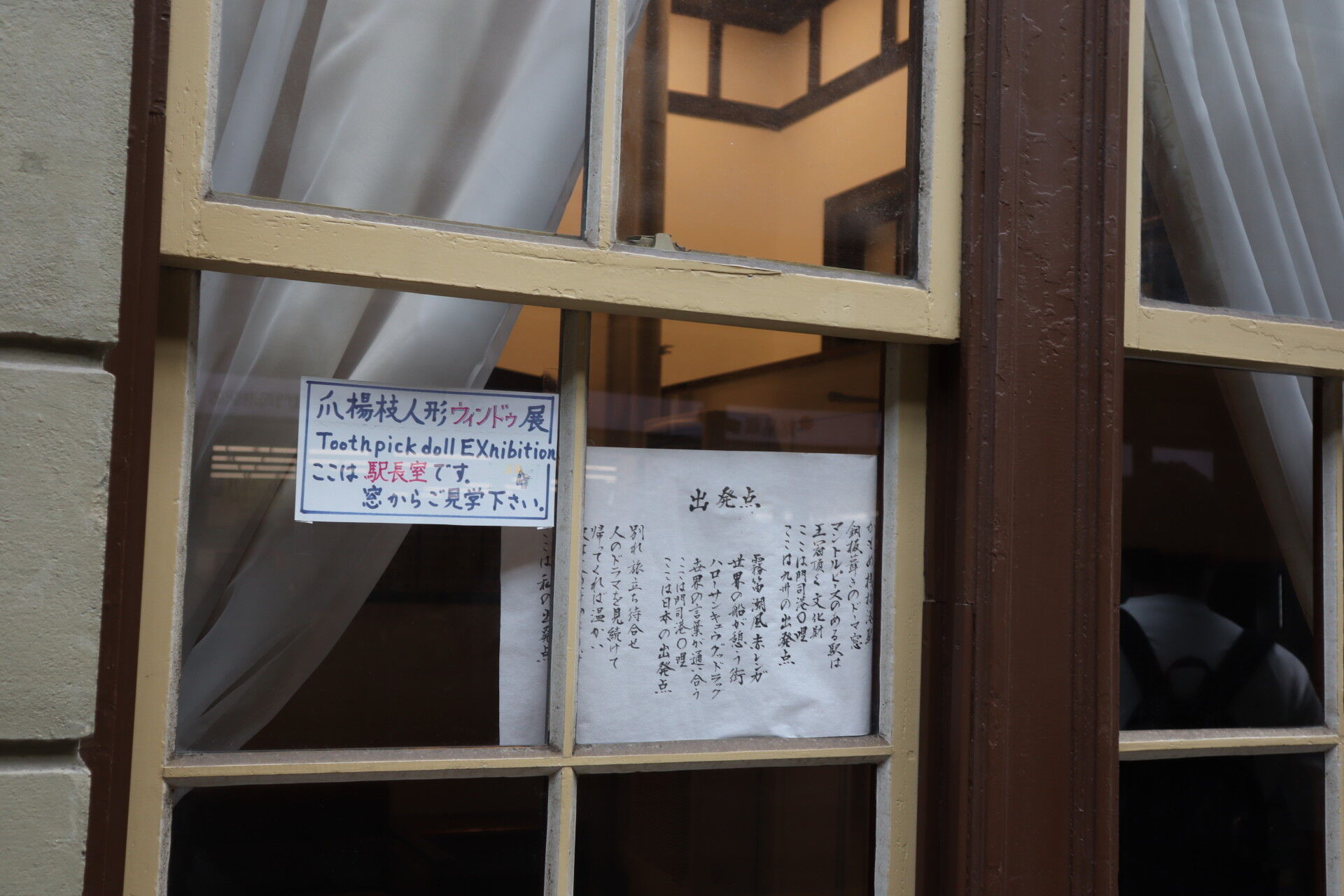 駅長室を覗き込める窓。