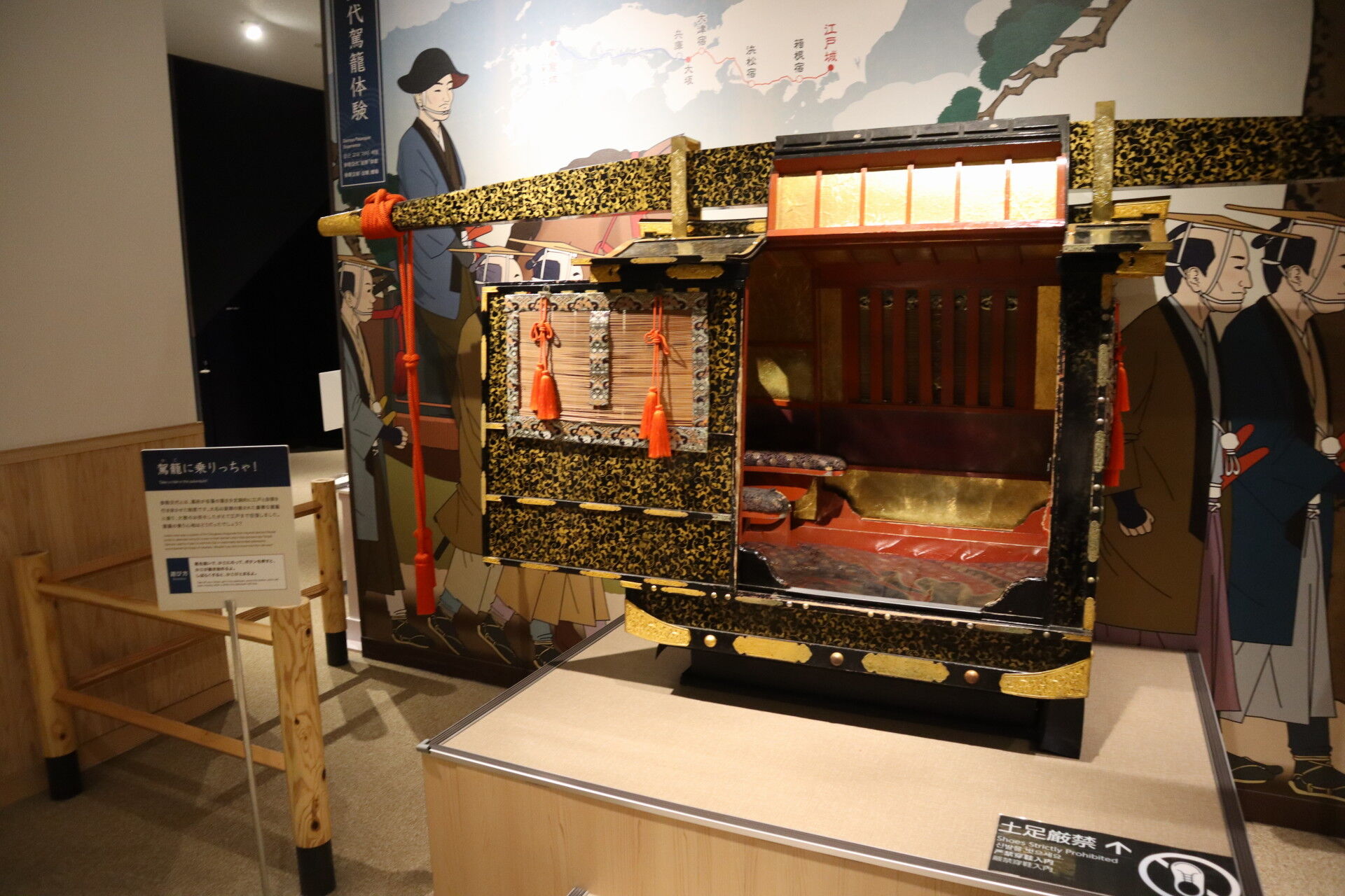 駕籠に乗ってみる展示があったり。