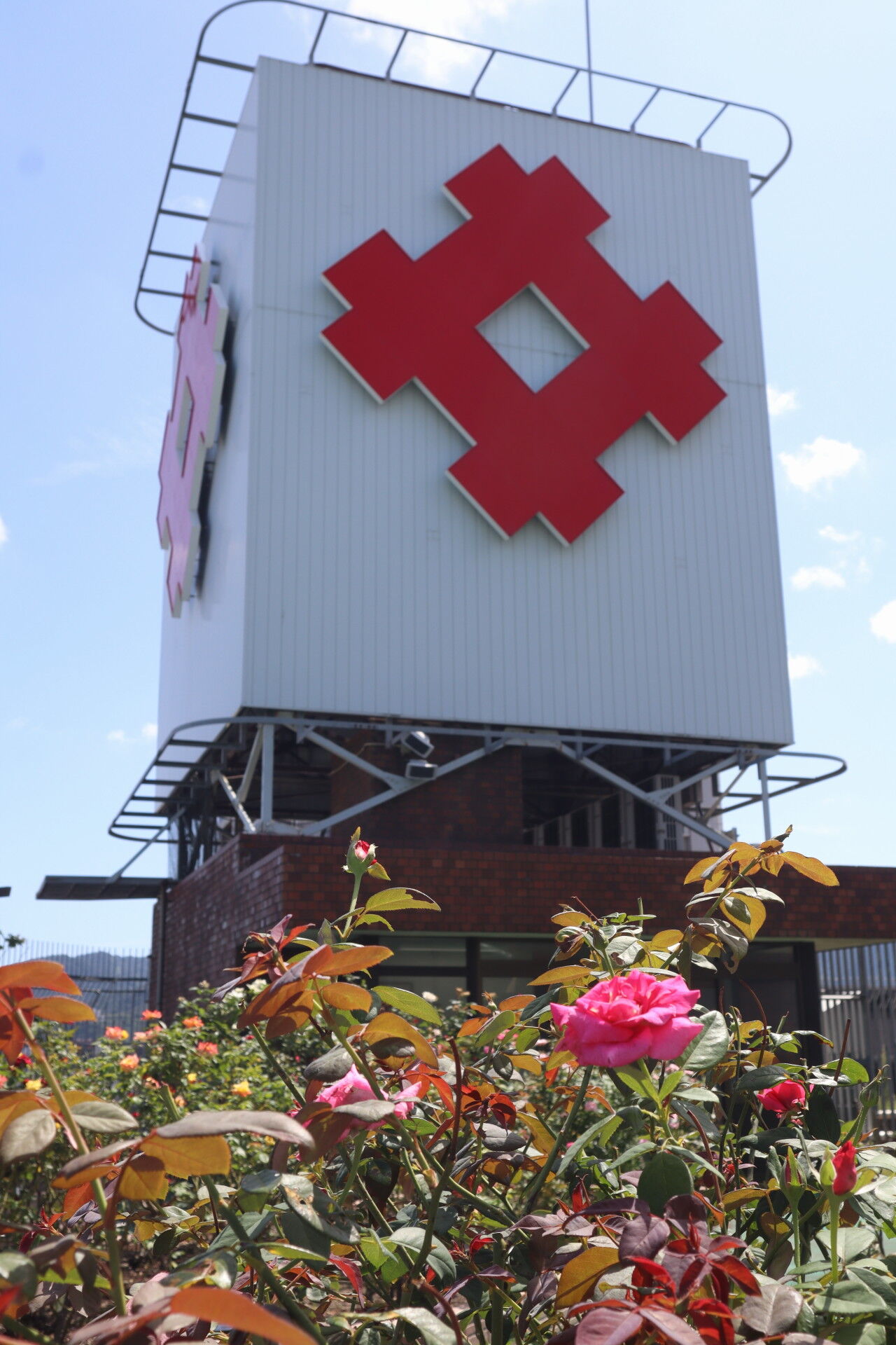 屋上に秋のバラが咲いています。
