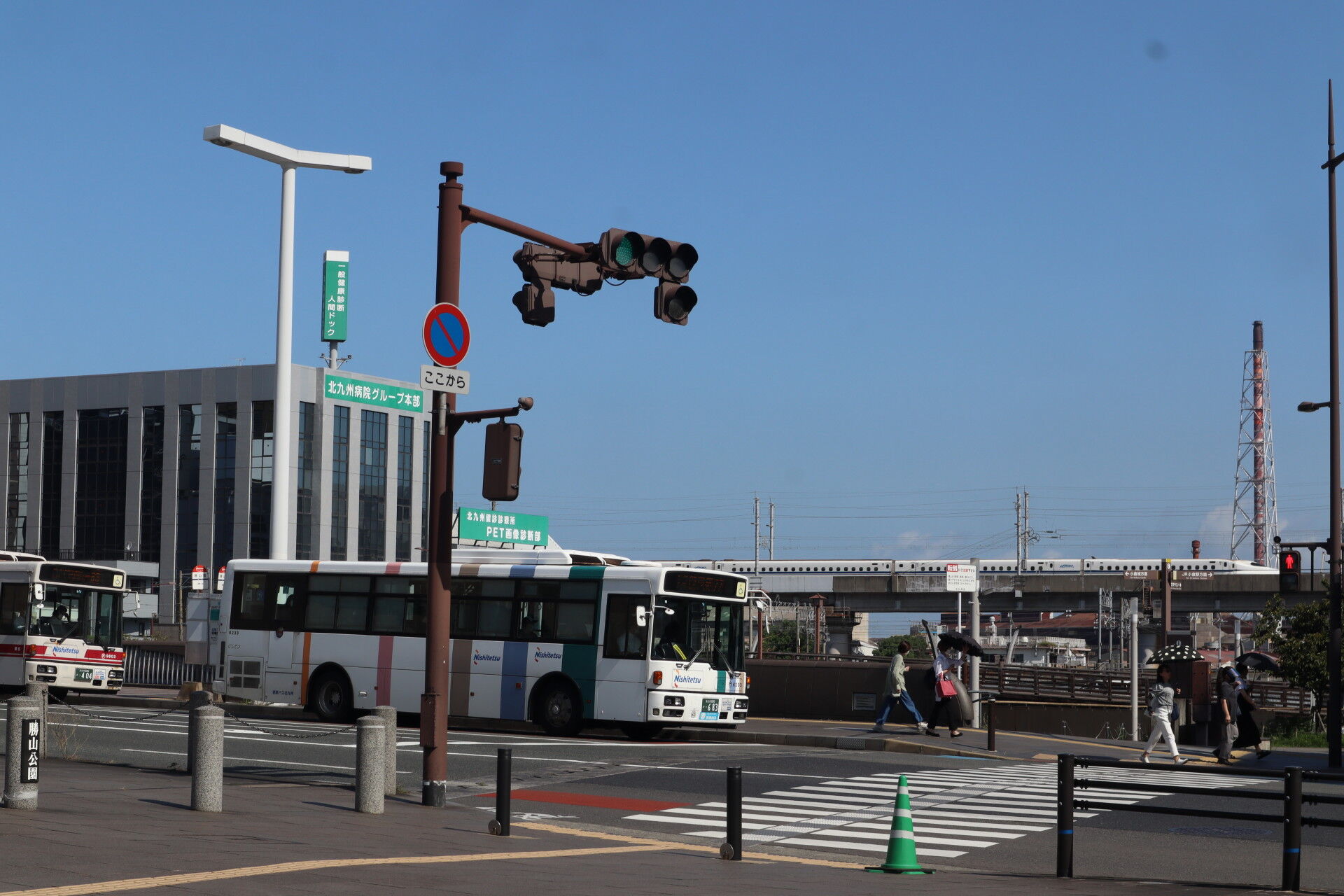バンバンバスが走っていきます。新幹線も。