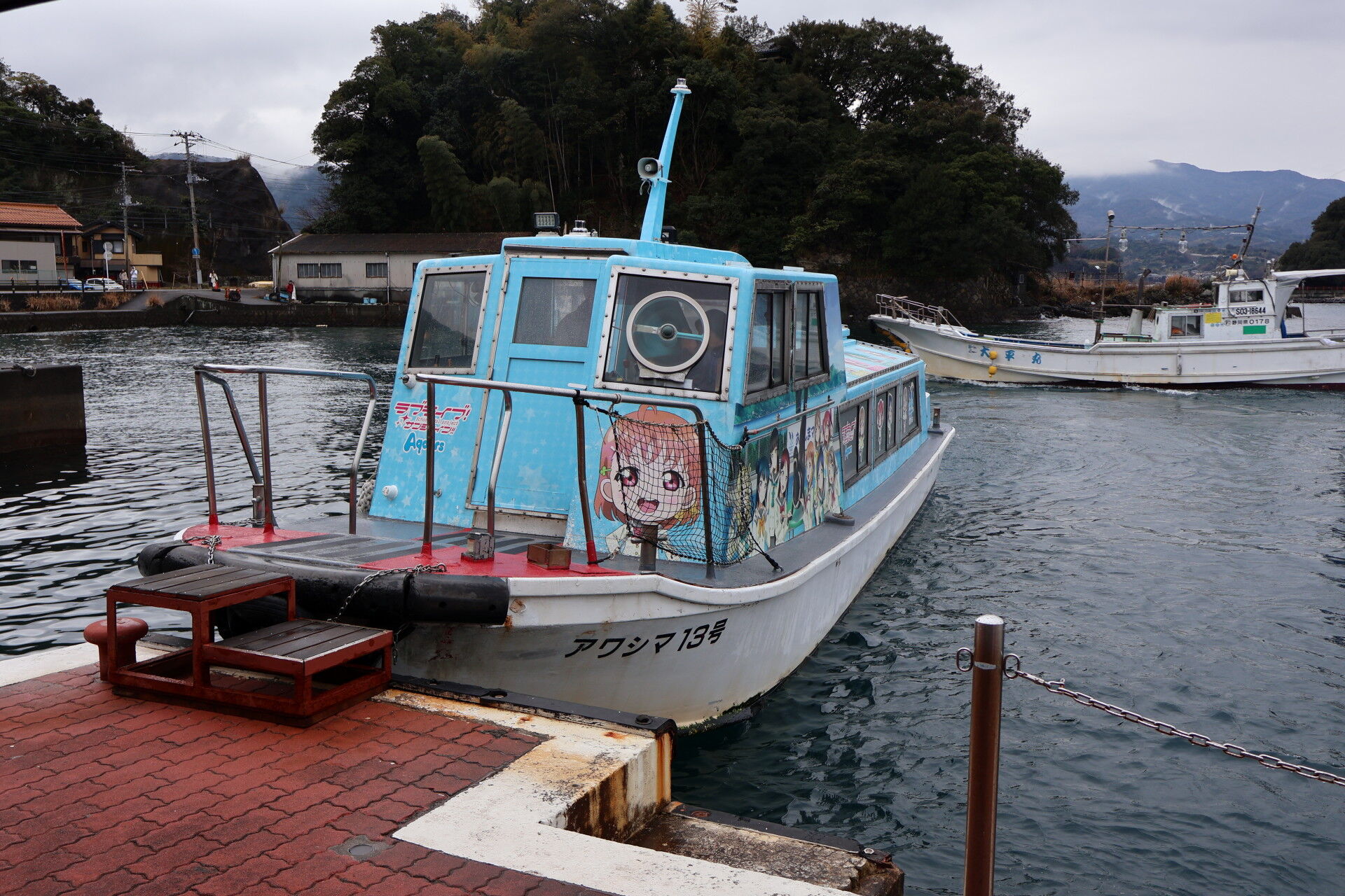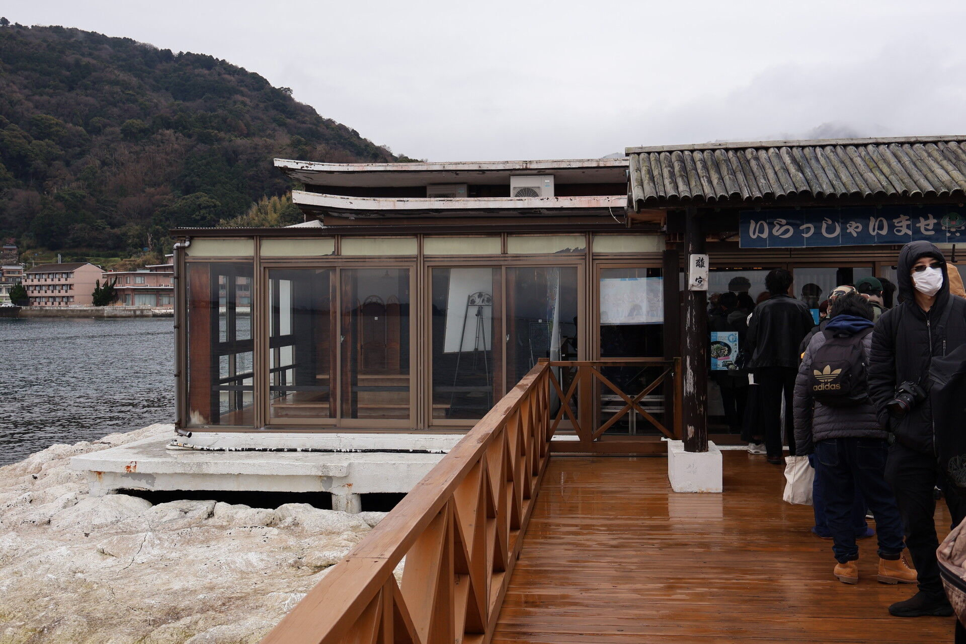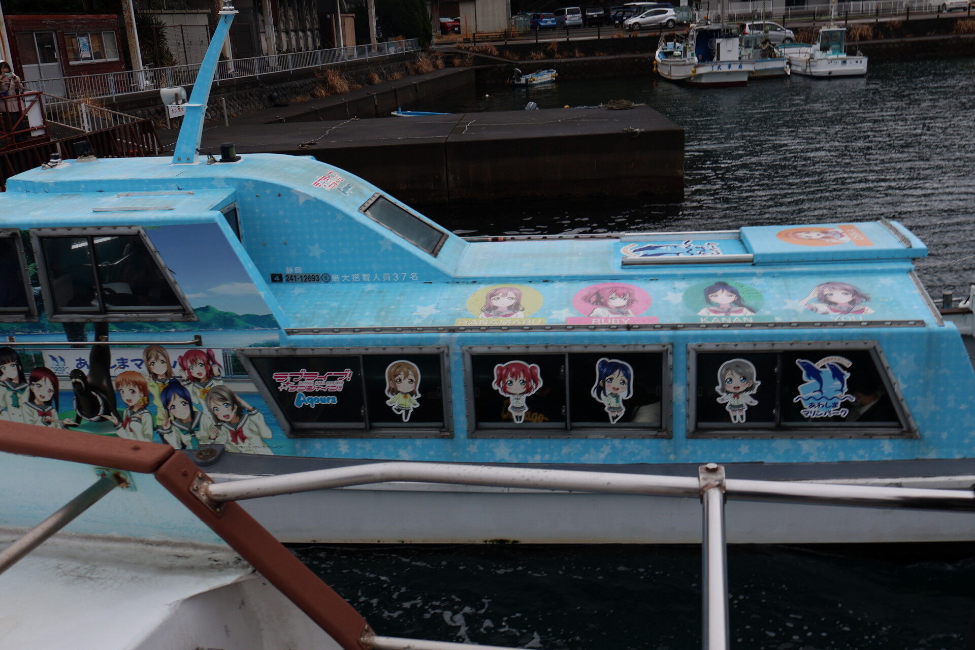 このエリアにはこうした小型の観光船がたくさんいます。千鳥観光汽船などですね。みんな前から乗船する構造になっているのが特徴です。もともと漁船がそういう構造だったりするので、使い勝手がいいんですかね?