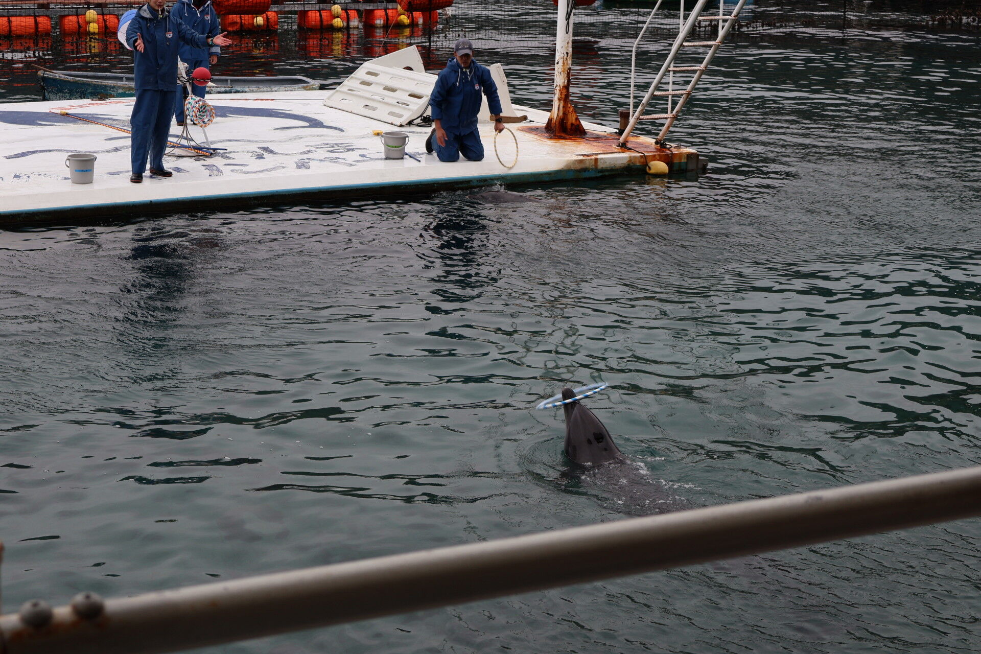 以前からここにいたイルカが亡くなってしまったそうで、公開トレーニングをしていたのです。