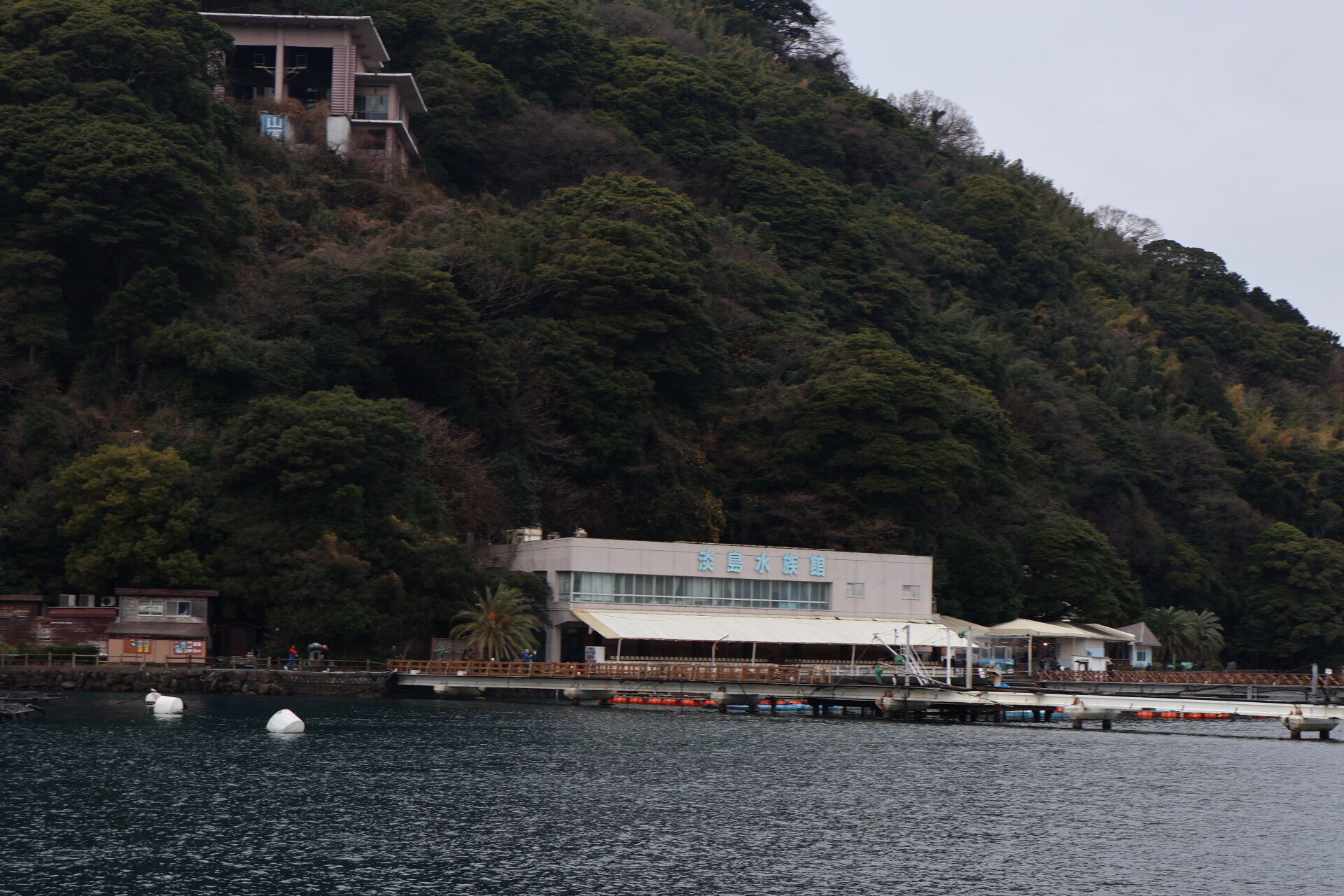 淡島水族館が見えてきます。マリンパークと名がつく前は淡島海洋公園でした。