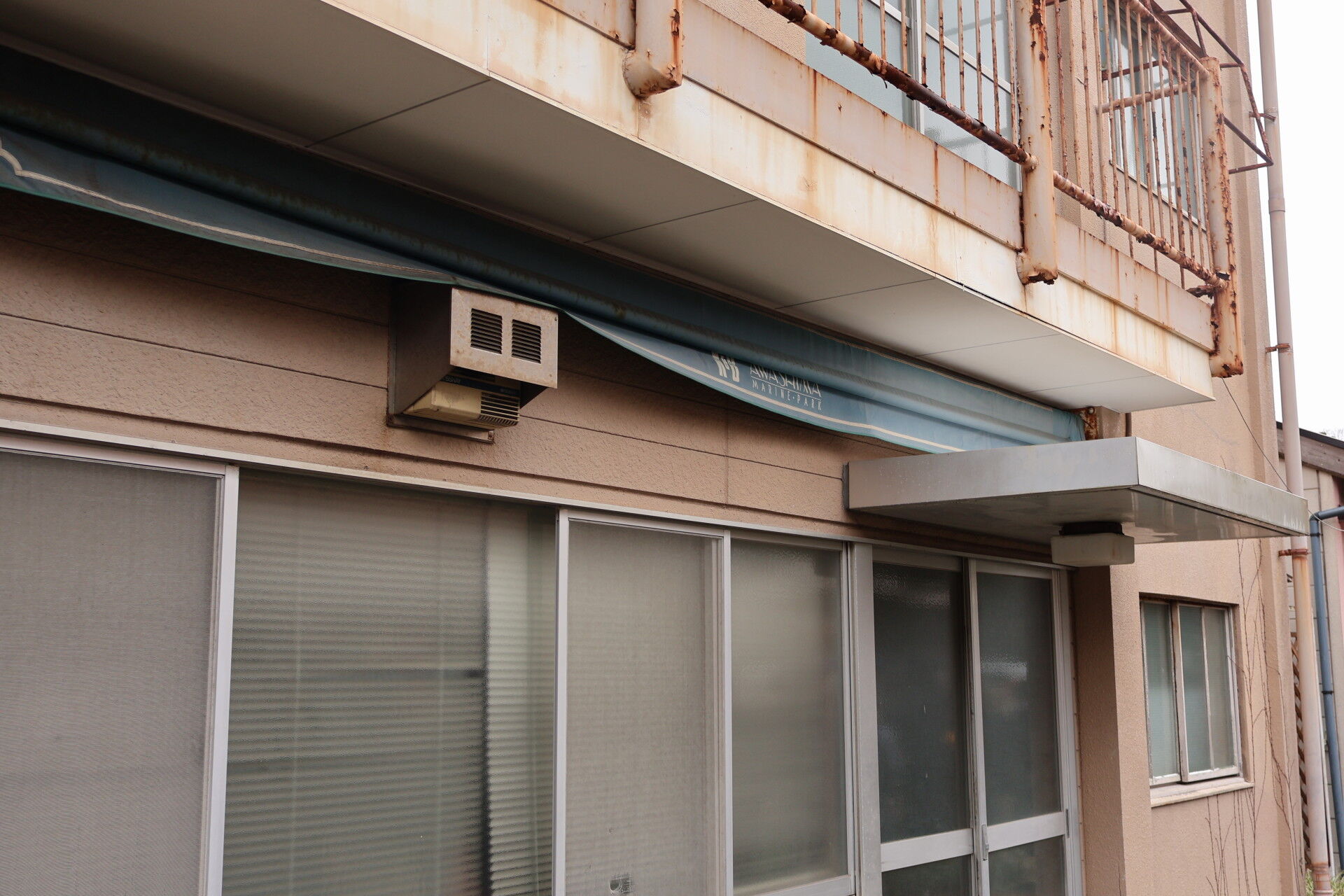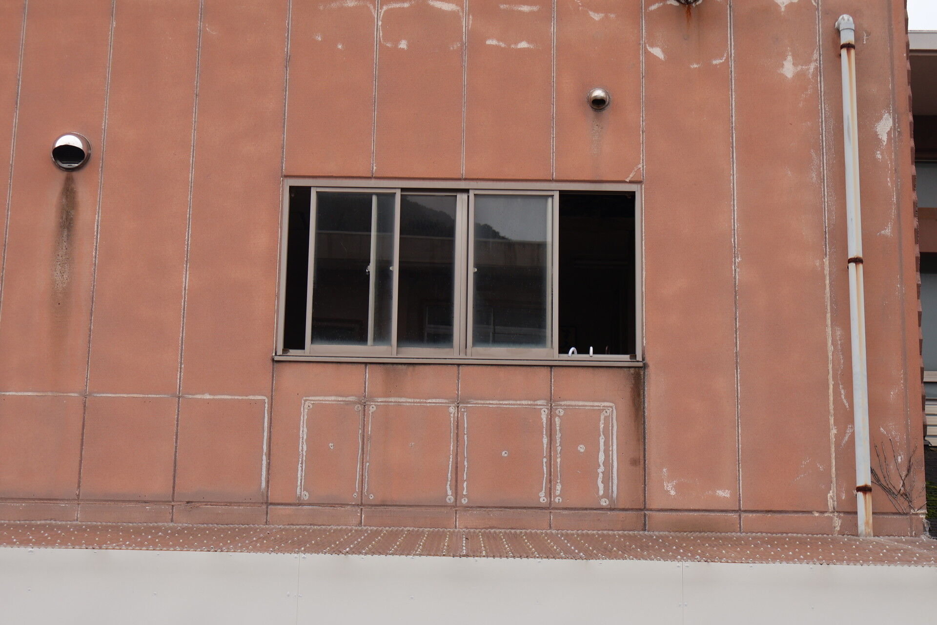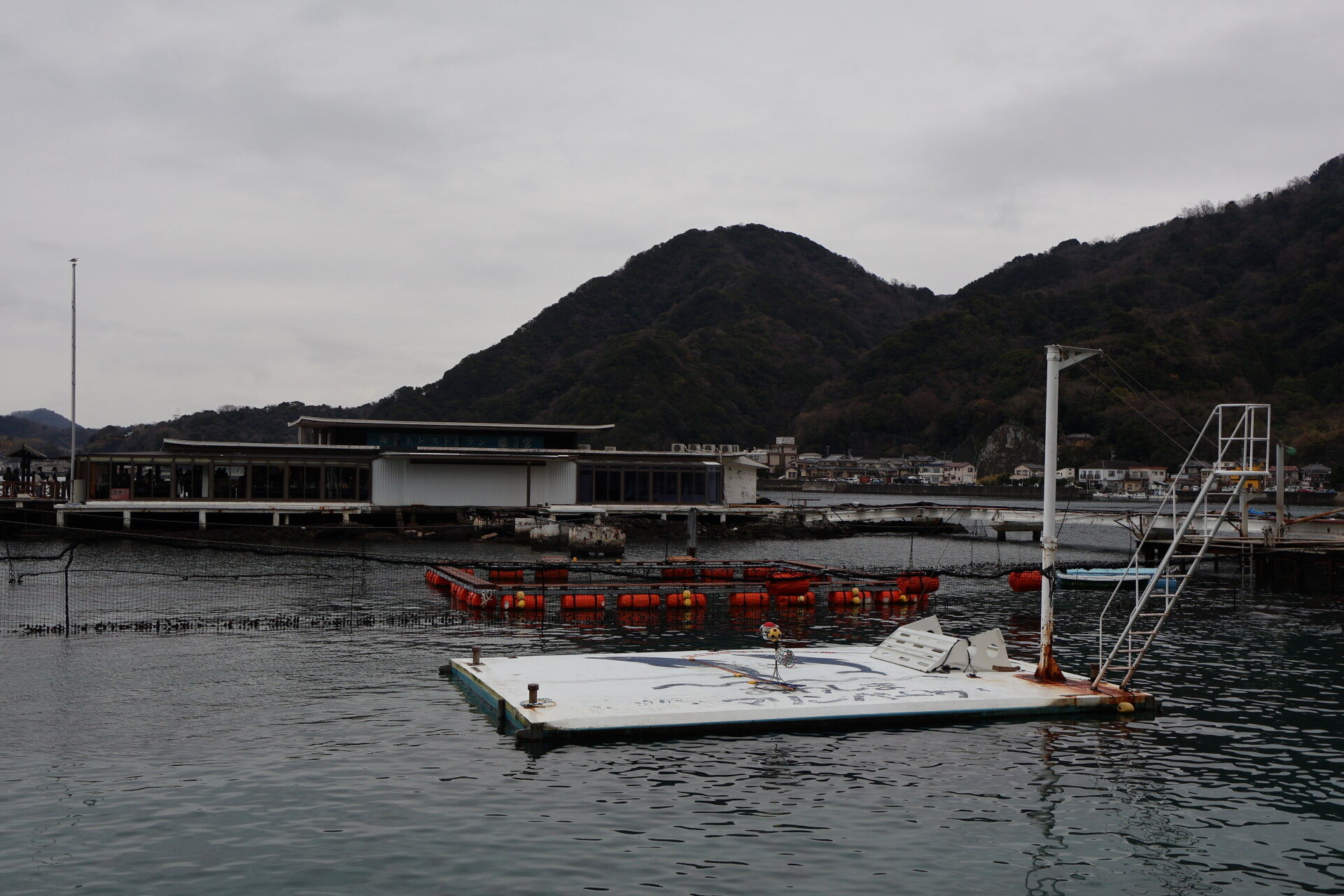 外から見るとこんな感じで、生簀のあった場所は白い壁。この生簀にも繋がっているように見えますが、果たして……。