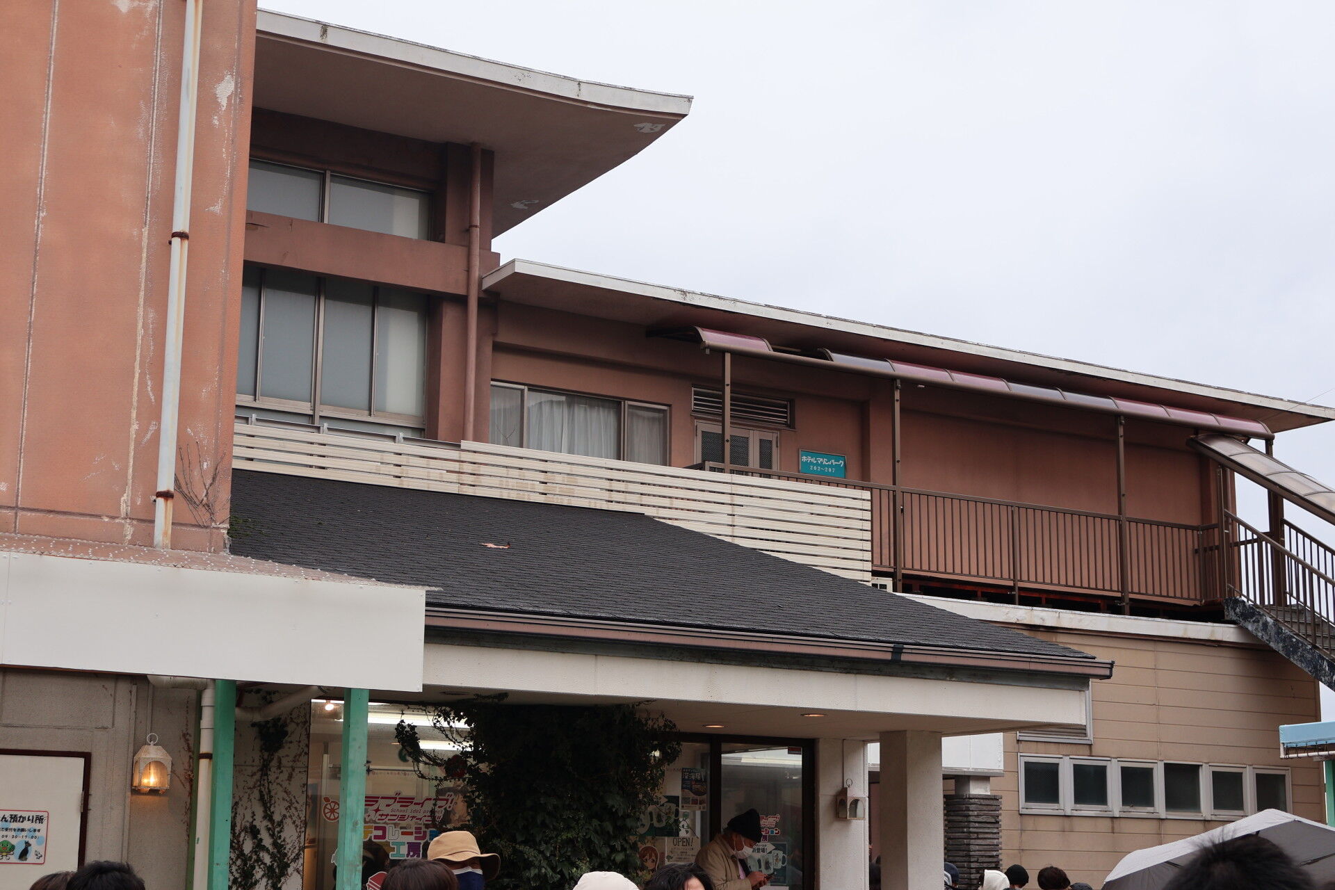 ウミガメコーナーのある建物。屋根が大きめなのですが、これがロープウェイ乗り場へのエレベーターがあった施設の根元の部分なのだという。