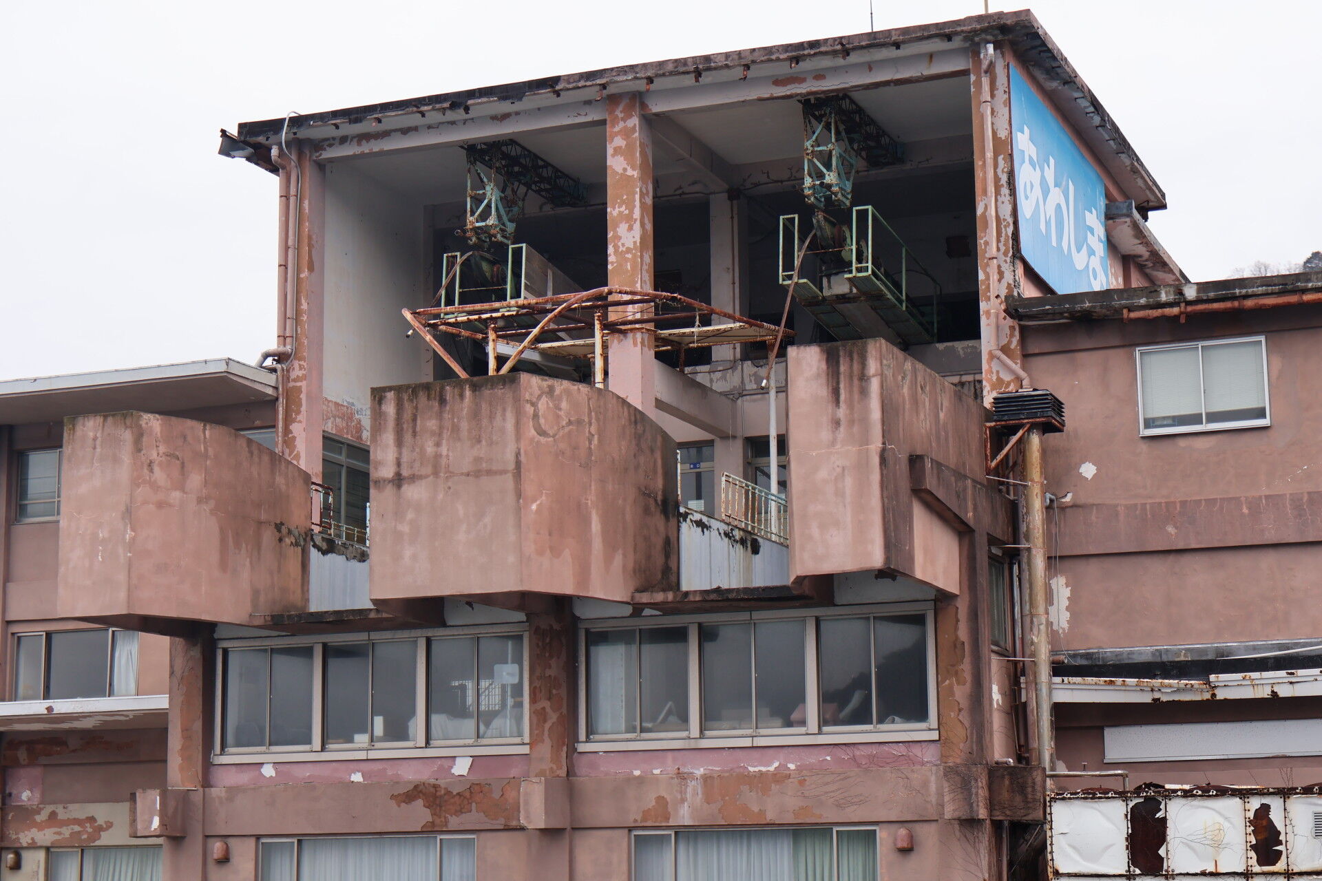 全景です。本当にこの建物にホテルなんて入っていたのか?不思議な建物です。1階には中華料理店の残骸もありました。