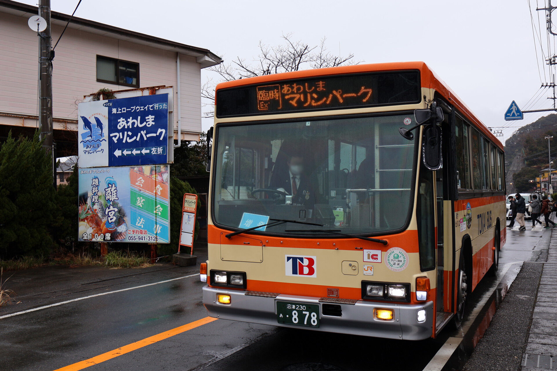 しかも淡島は沼津駅からバスで30分、本数も毎時2本という立地。公共交通でもなかなか距離があるので、本当に辿り着けるのか…?