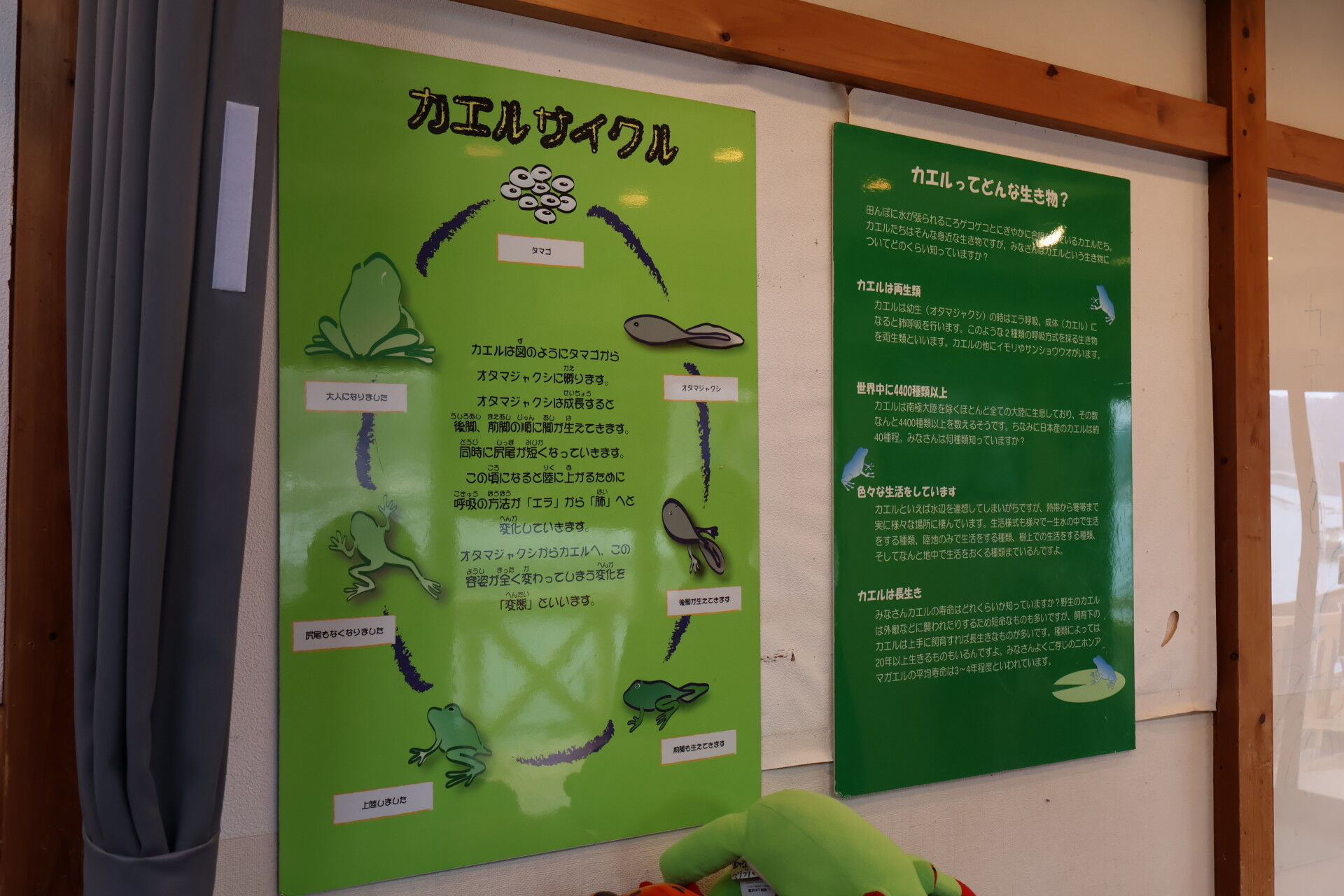 出口のそばにはさらにカエルの一生、概要なども説明されています。