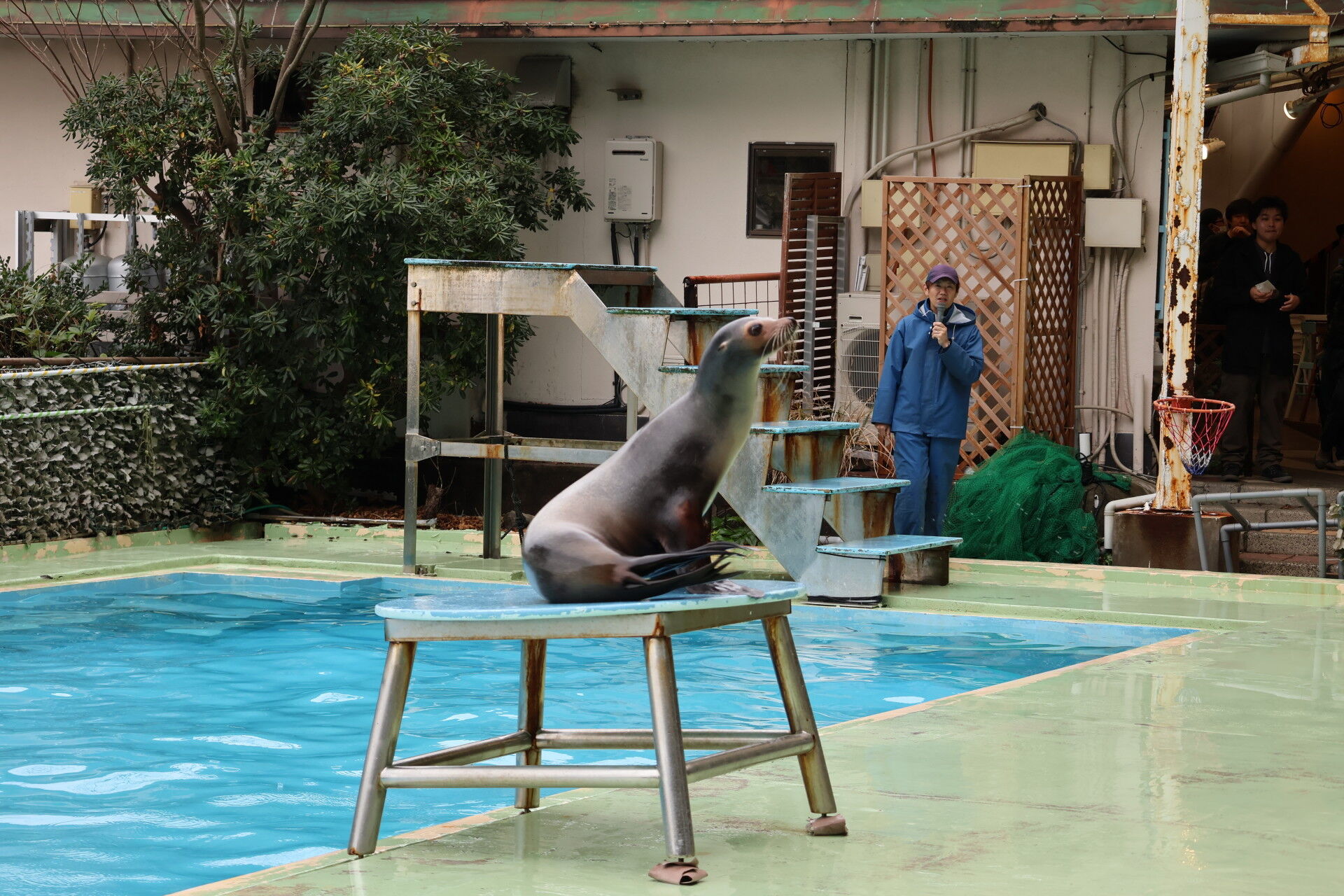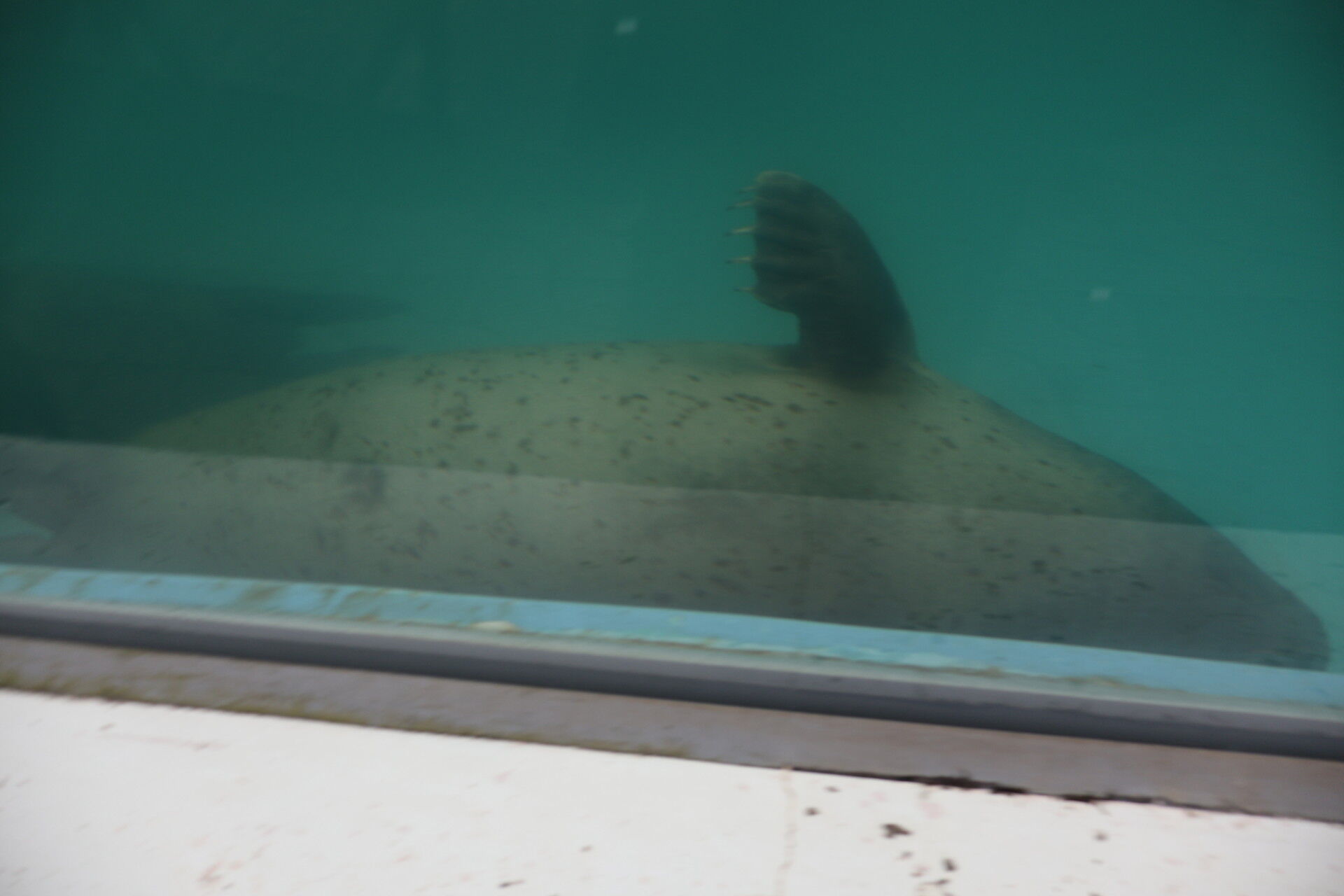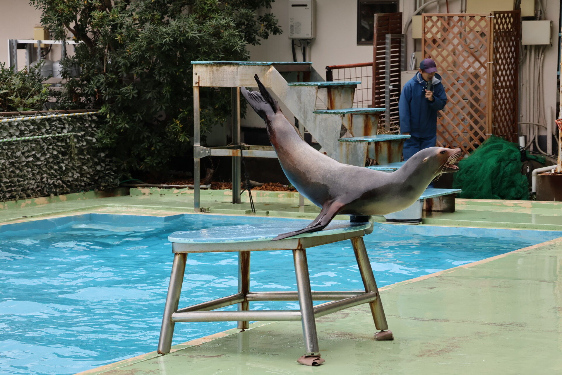 アシカは落ち着きなくバチャバチャと水面を揺らしています。