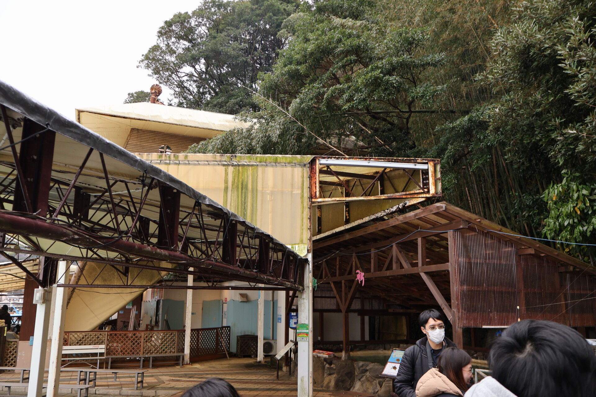 トンネルの向かいはこうなっています。獣舎です。スレート屋根とか時代を感じますね。