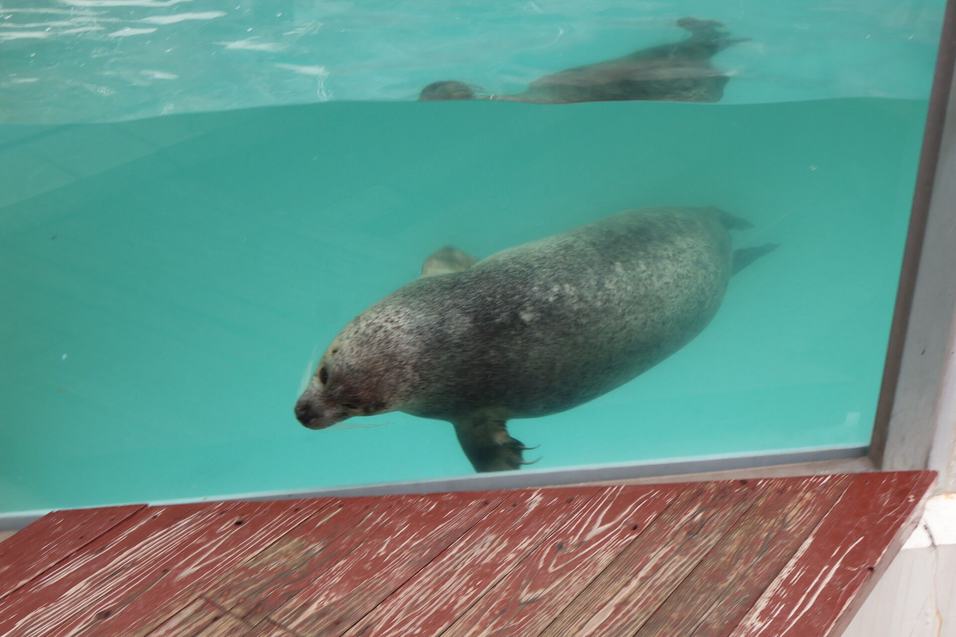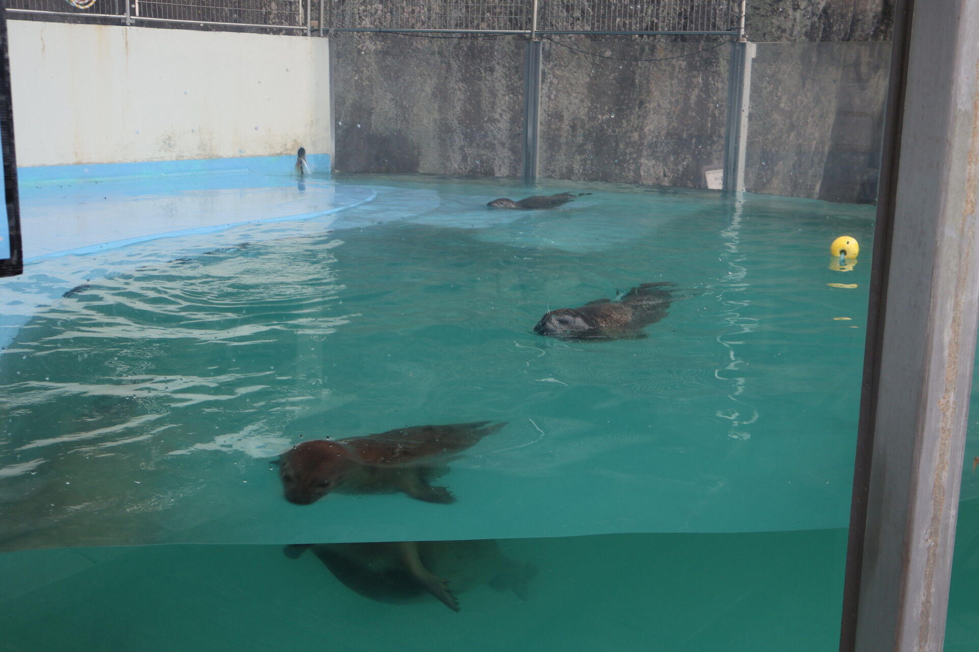 アシカたちはステージに行く時に通路のトンネルを潜ります。