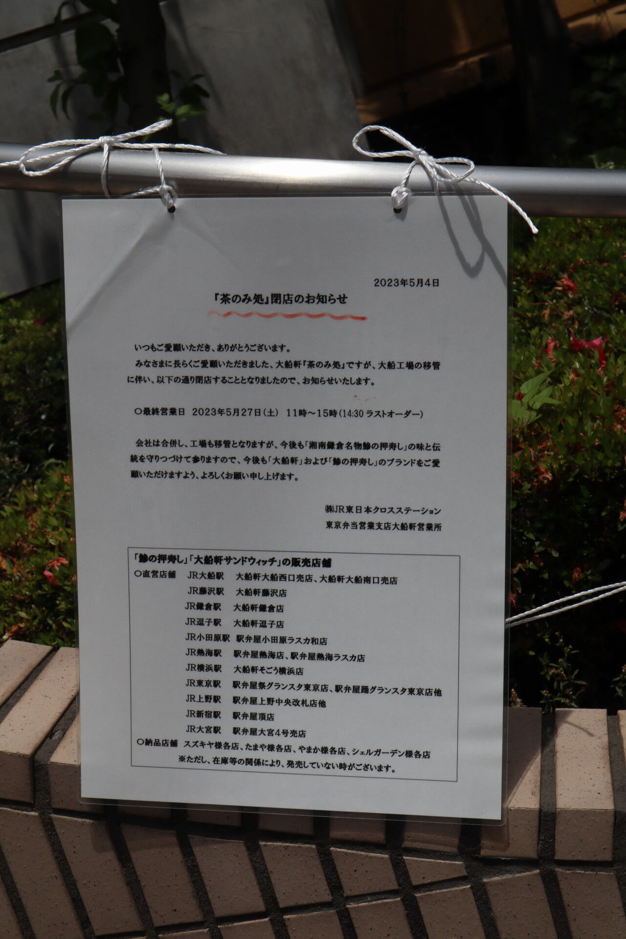 2023年、大船軒がJR東日本の1ブランドとなり、法人としては消滅することとなりました。