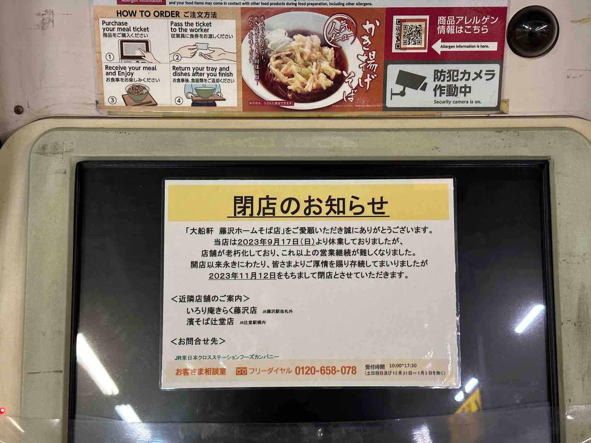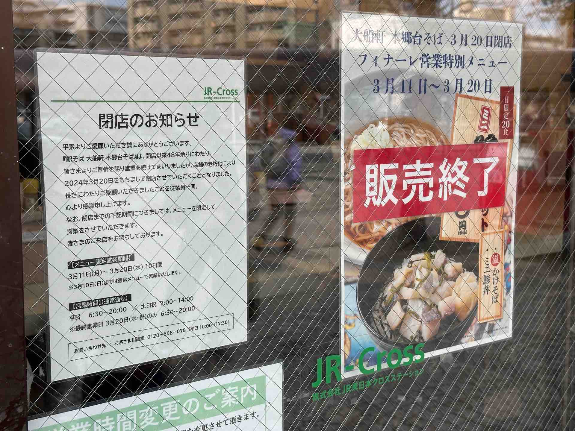 実は全く同じ理由で保土ヶ谷駅の濱そばも閉店しているのです。きっと老朽化とは違う理由があるのでしょう。
