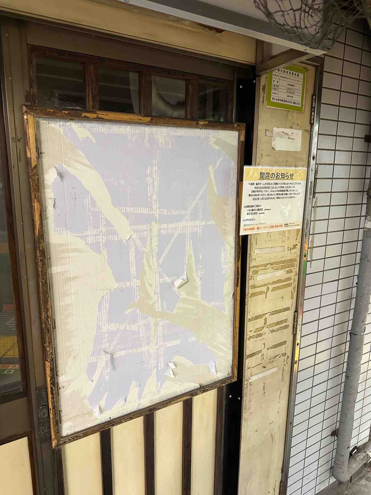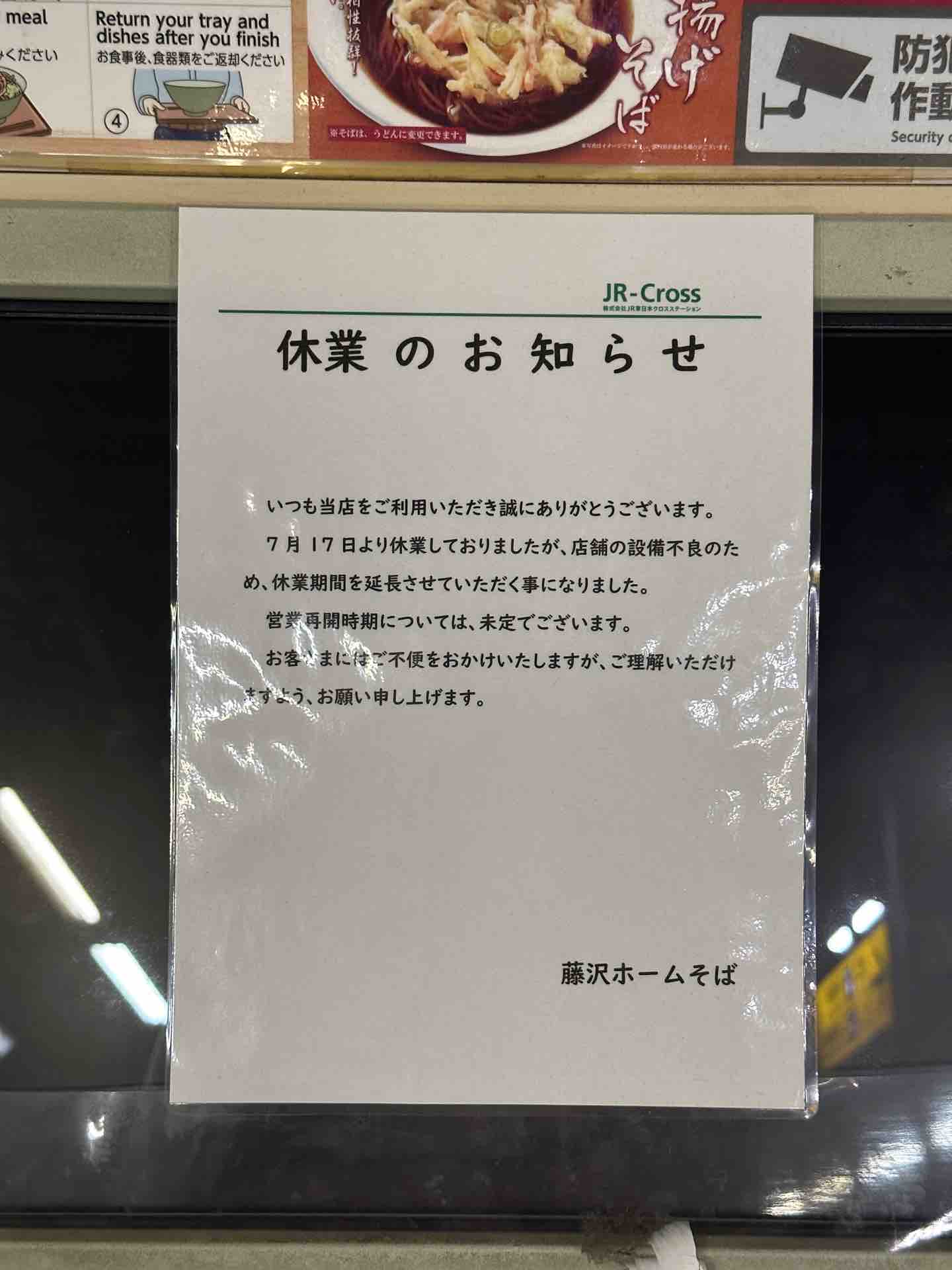 高崎駅や藤沢駅でもホームのそば屋が臨時休業することはよくあって、JR東日本に限らず、東海管内でも閉店や休業が続き、つぎは地元も……と、駅構内そば屋の存続に不安を与えていた時期でした。